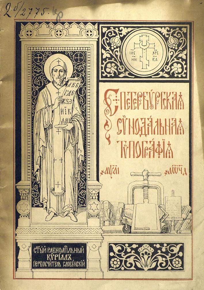 Перешедшие в общественное достояние материалы электронного фонда ЦГПБ им. В.В. Маяковского. Сведения о издательстве или типографии: Синодальная тип.. Место издания: СПб.