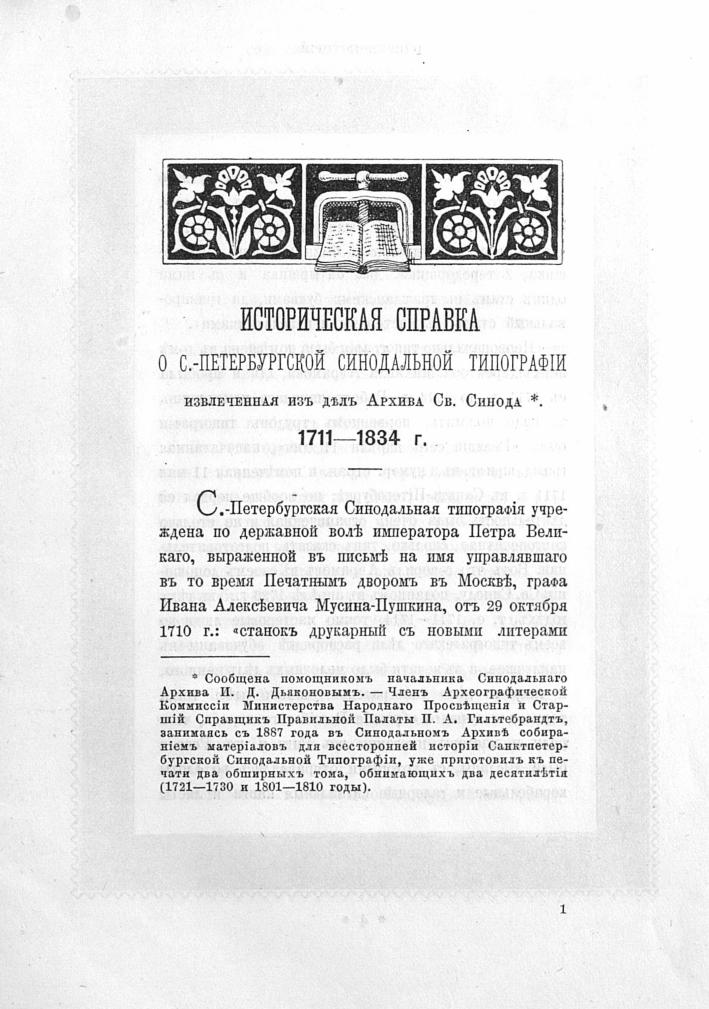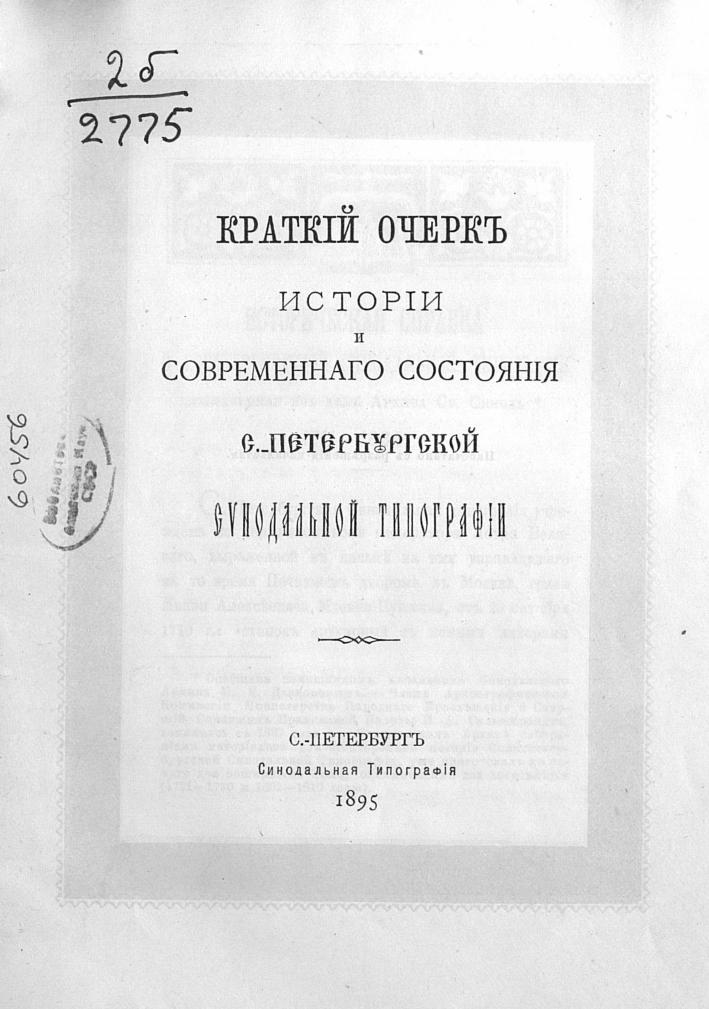 Краткий очерк истории и современного состояния Санкт-Петербургской Синодальной типографии