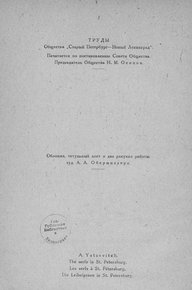 Перешедшие в общественное достояние материалы электронного фонда ЦГПБ им. В.В. Маяковского. Сведения о издательстве или типографии: Об-во "Старый Петербург–Новый Ленинград". Место издания: Л.
