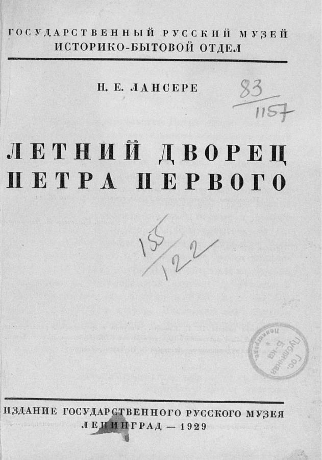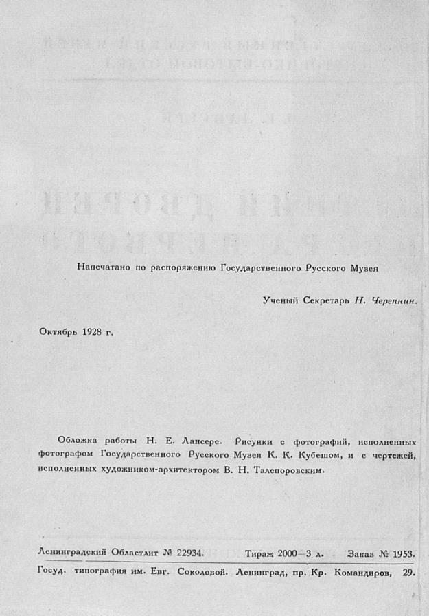 Перешедшие в общественное достояние материалы электронного фонда ЦГПБ им. В.В. Маяковского. Сведения о издательстве или типографии: Государственный Русский музей, Историко-бытовой отдел. Место издания: Л.