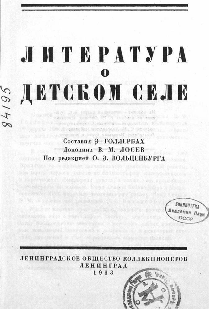 Сост. Э. Ф. Голлербах; доп. В. М. Лосев, под ред. О. Э. Вольценбурга