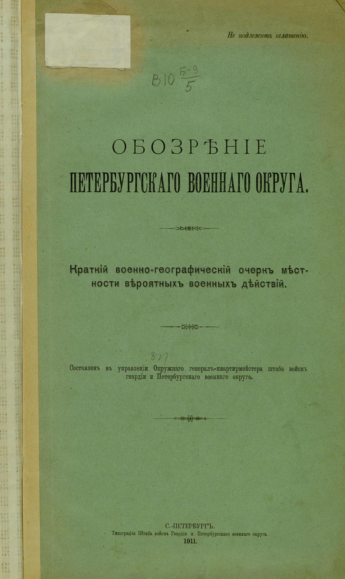 Перешедшие в общественное достояние материалы электронного фонда ЦГПБ им. В.В. Маяковского. Сведения о издательстве или типографии: тип. Штаба войск Гвардии и Петерб. воен. окр.. Место издания: СПб.