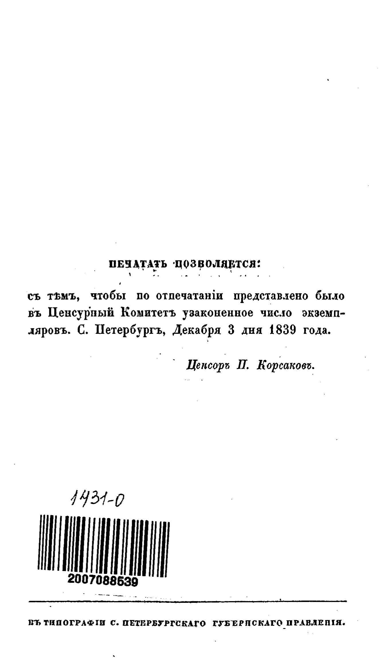 Перешедшие в общественное достояние материалы электронного фонда ЦГПБ им. В.В. Маяковского. Сведения о издательстве или типографии: тип. В. Греча. Место издания: СПб.