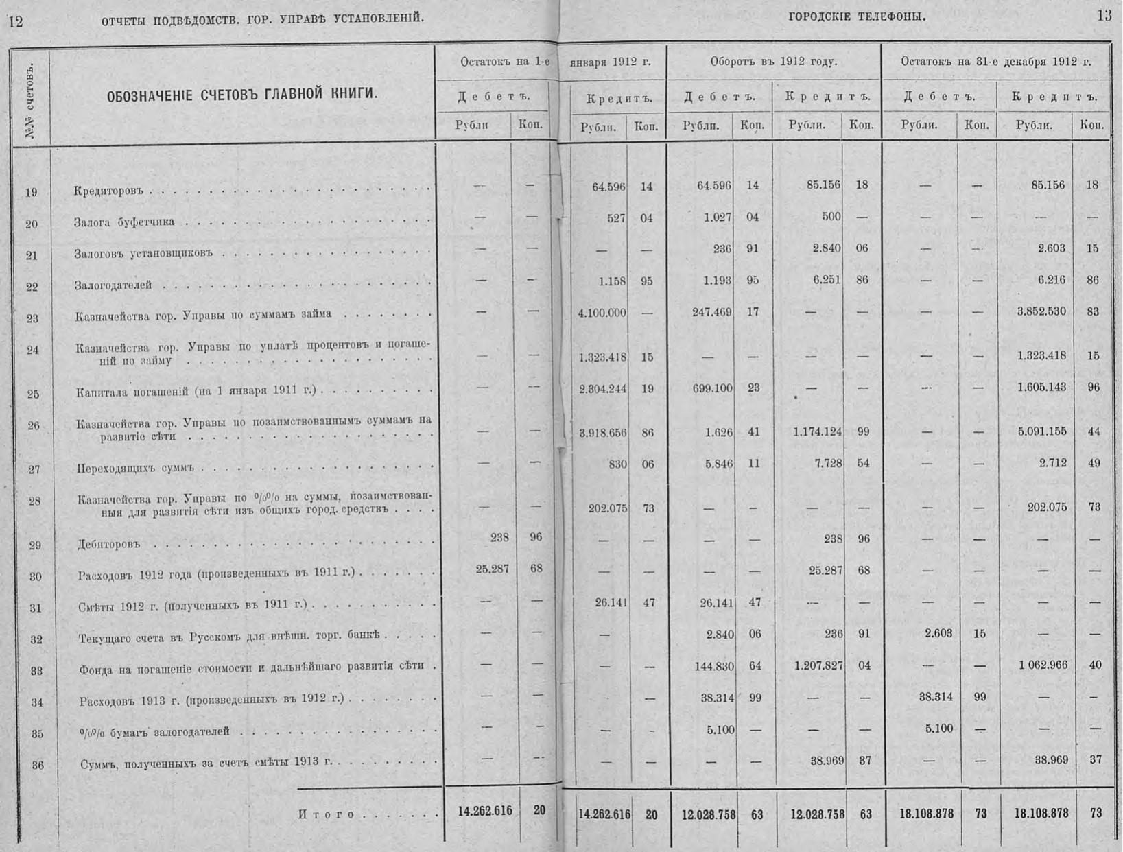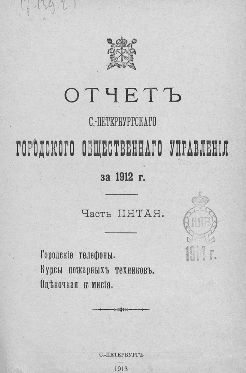 Отчет городской управы за 1912 г. Ч. 5 : Городские телефоны. Курсы пожарных техников. Оценочная комиссия