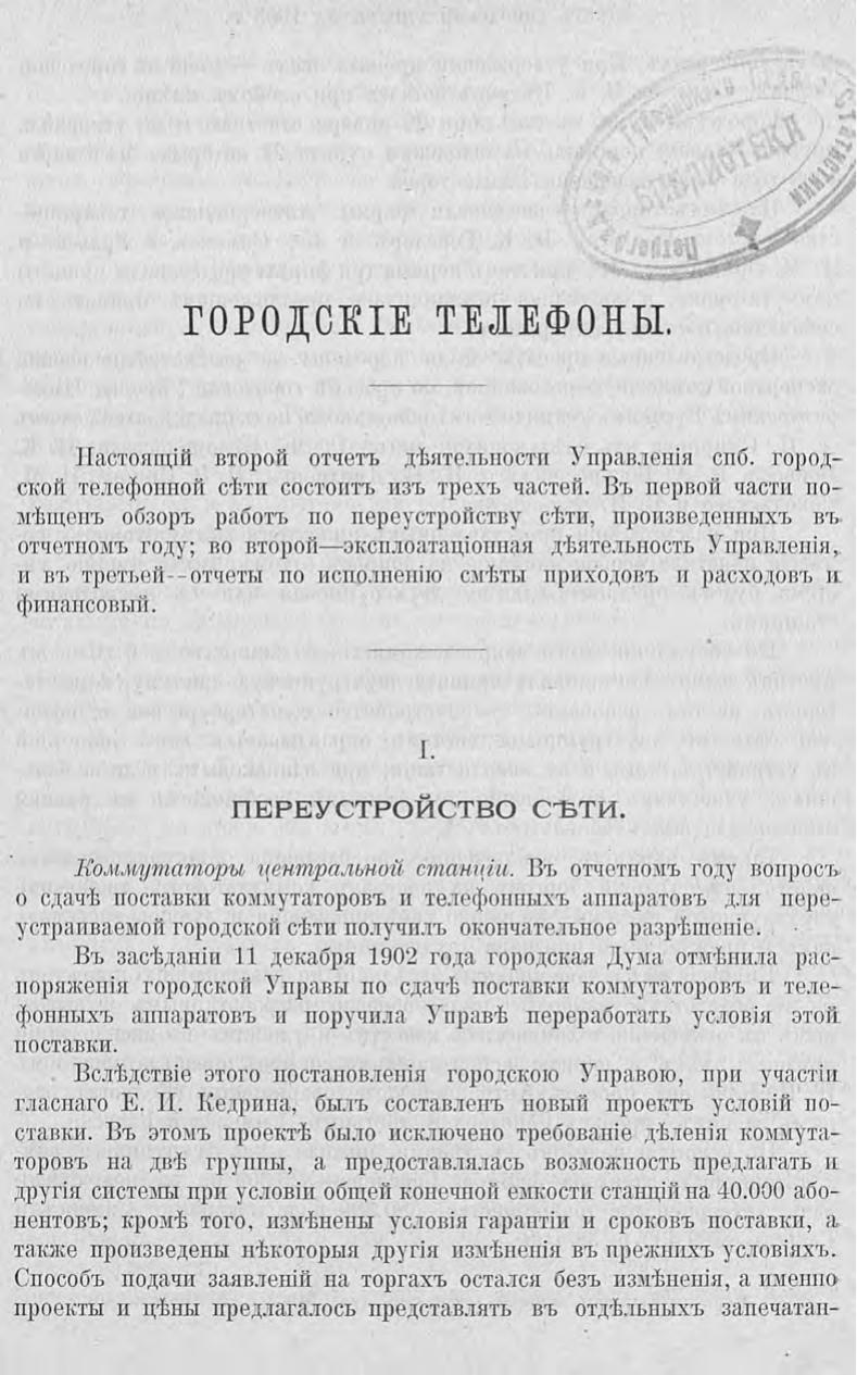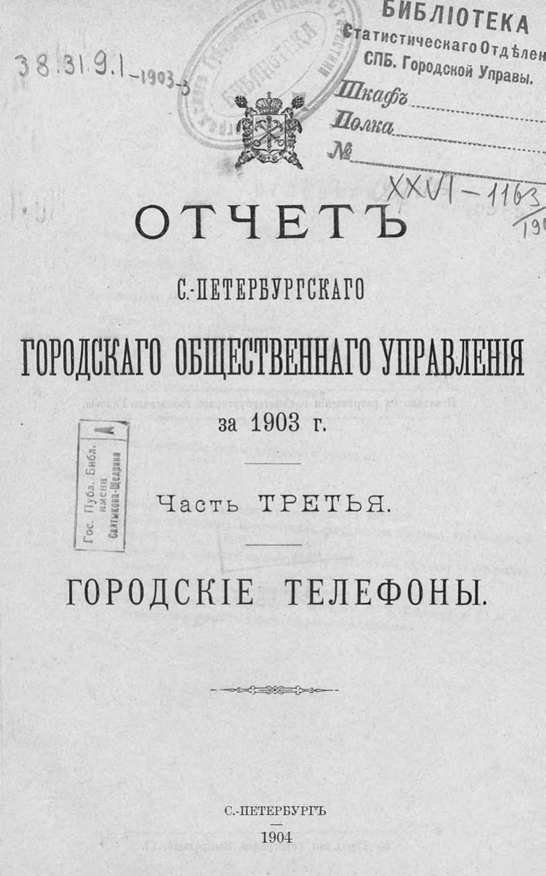 Отчет городской управы за 1903 г. Ч. 3 : Городские телефоны