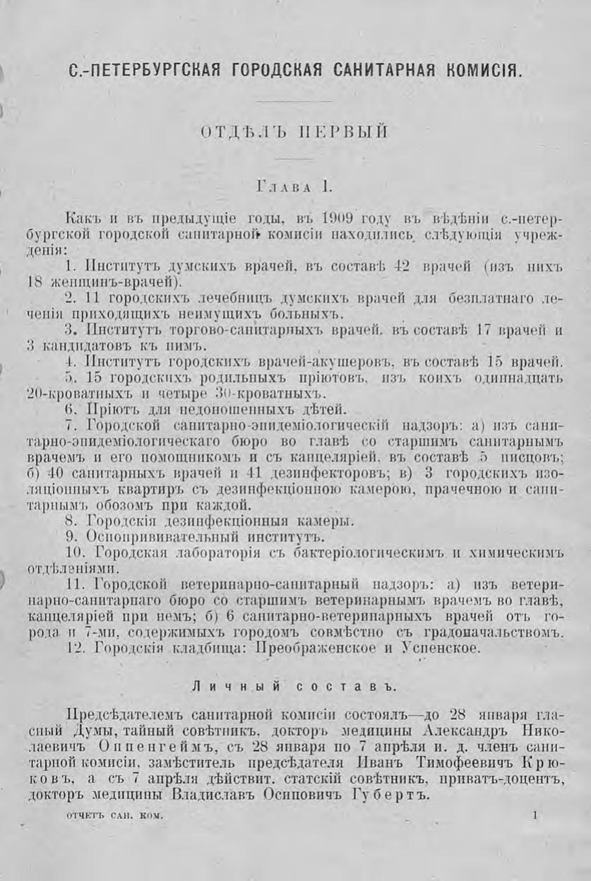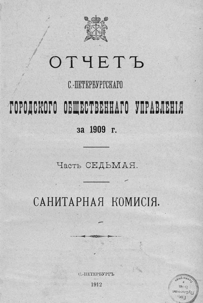 Отчет городской управы за 1909 г. Ч. 7 : Санитарная комиссия