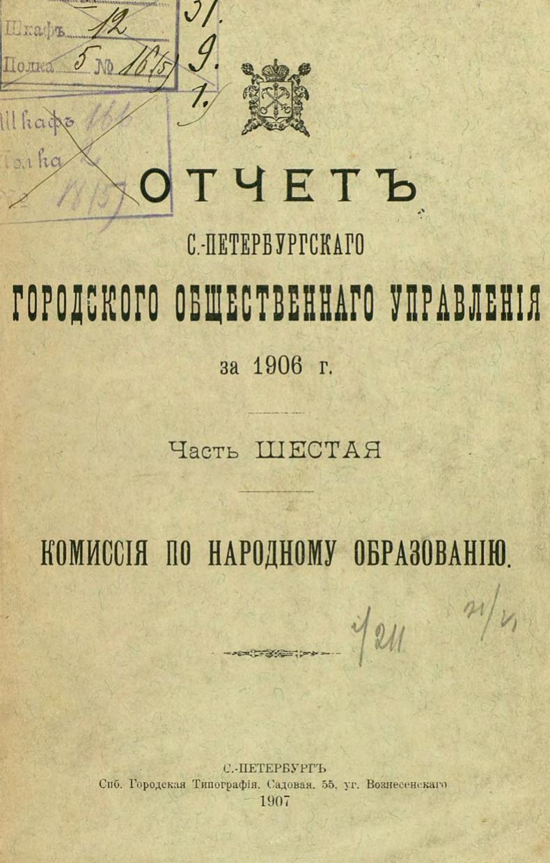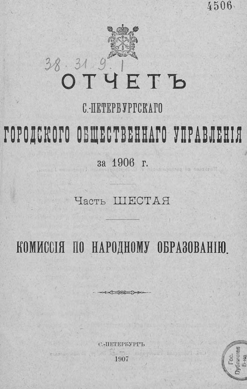 Отчет городской управы за 1906 г. Ч. 6 : Комиссия по народному образованию