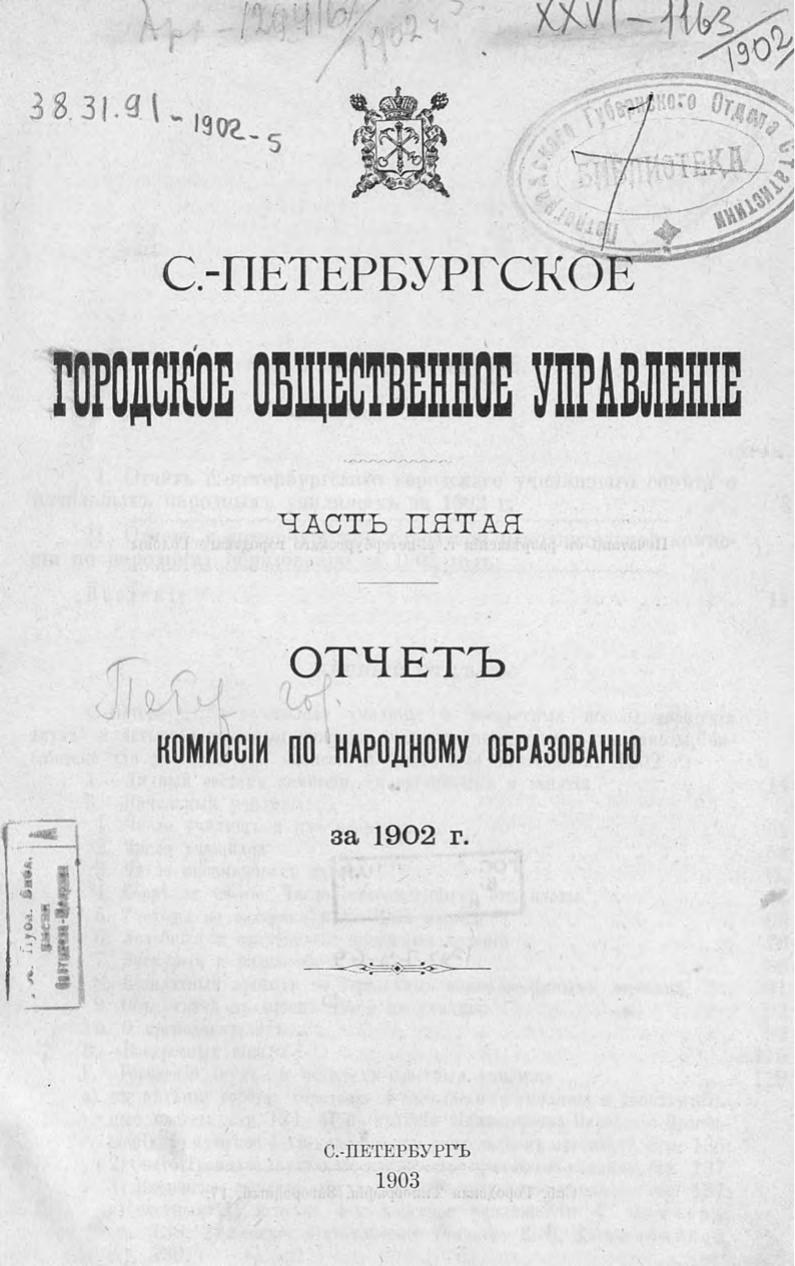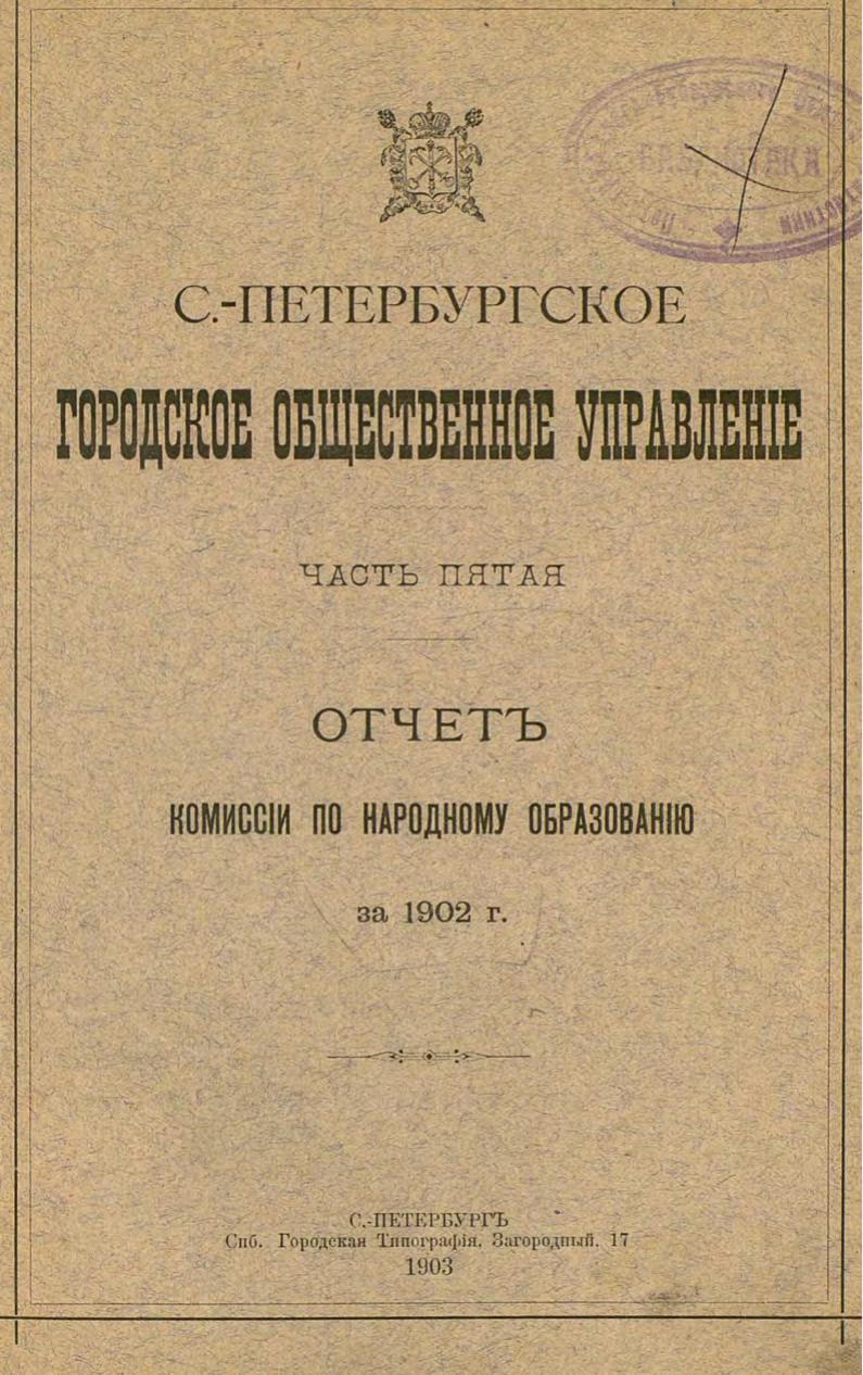 Отчет городской управы за 1902 г. Ч. 5 : Отчет комиссии по народному образованию