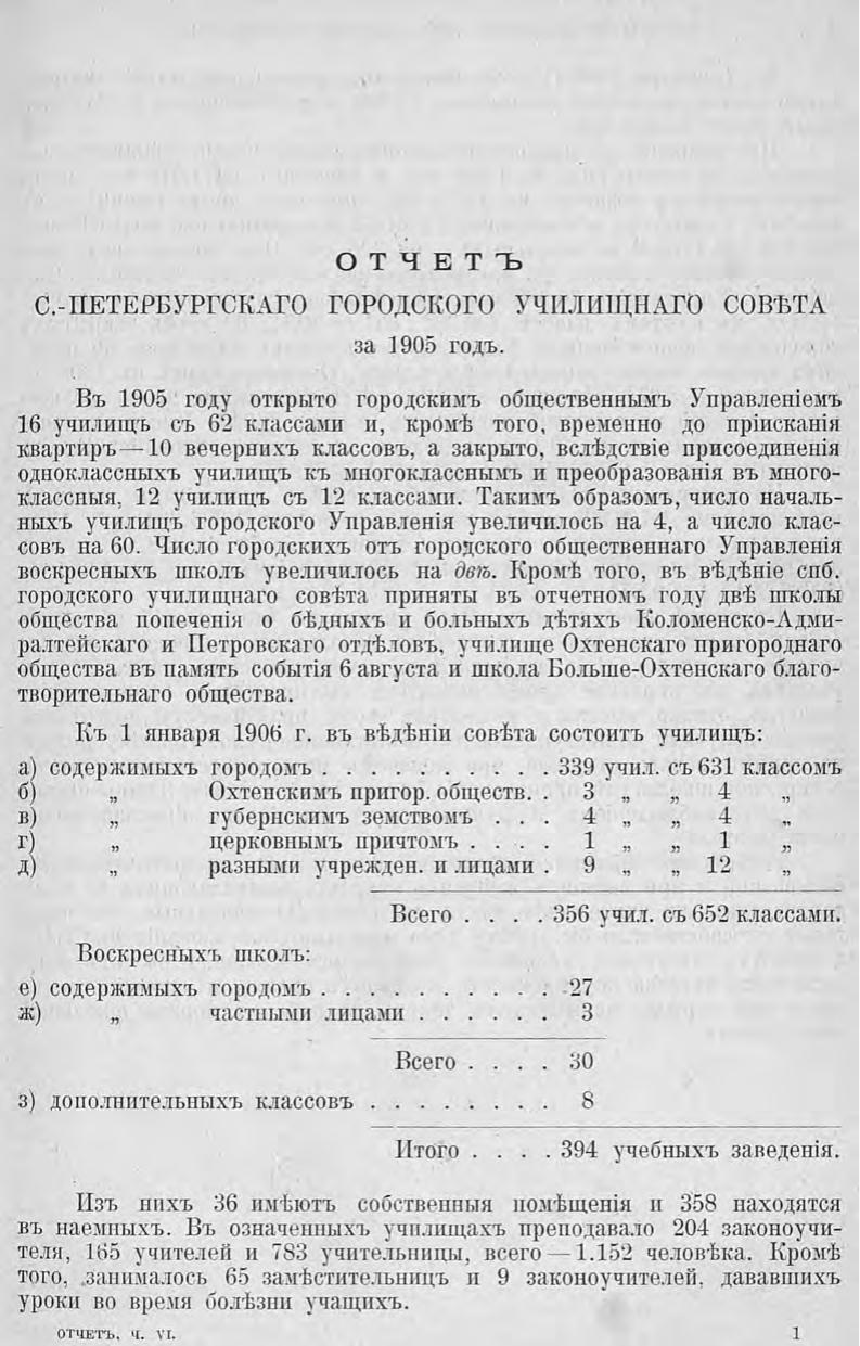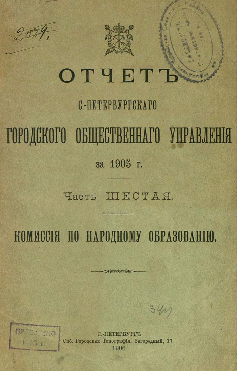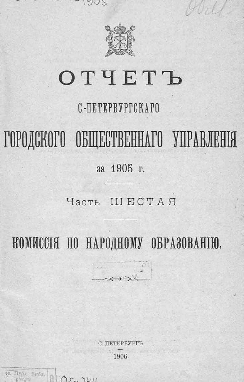 Отчет городской управы за 1905 г. Ч. 6 : Комиссия по народному образованию