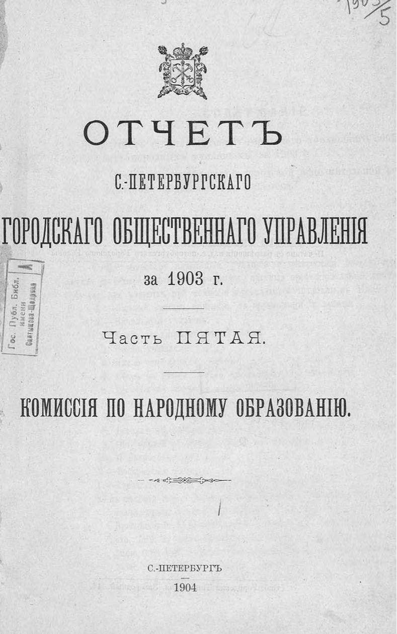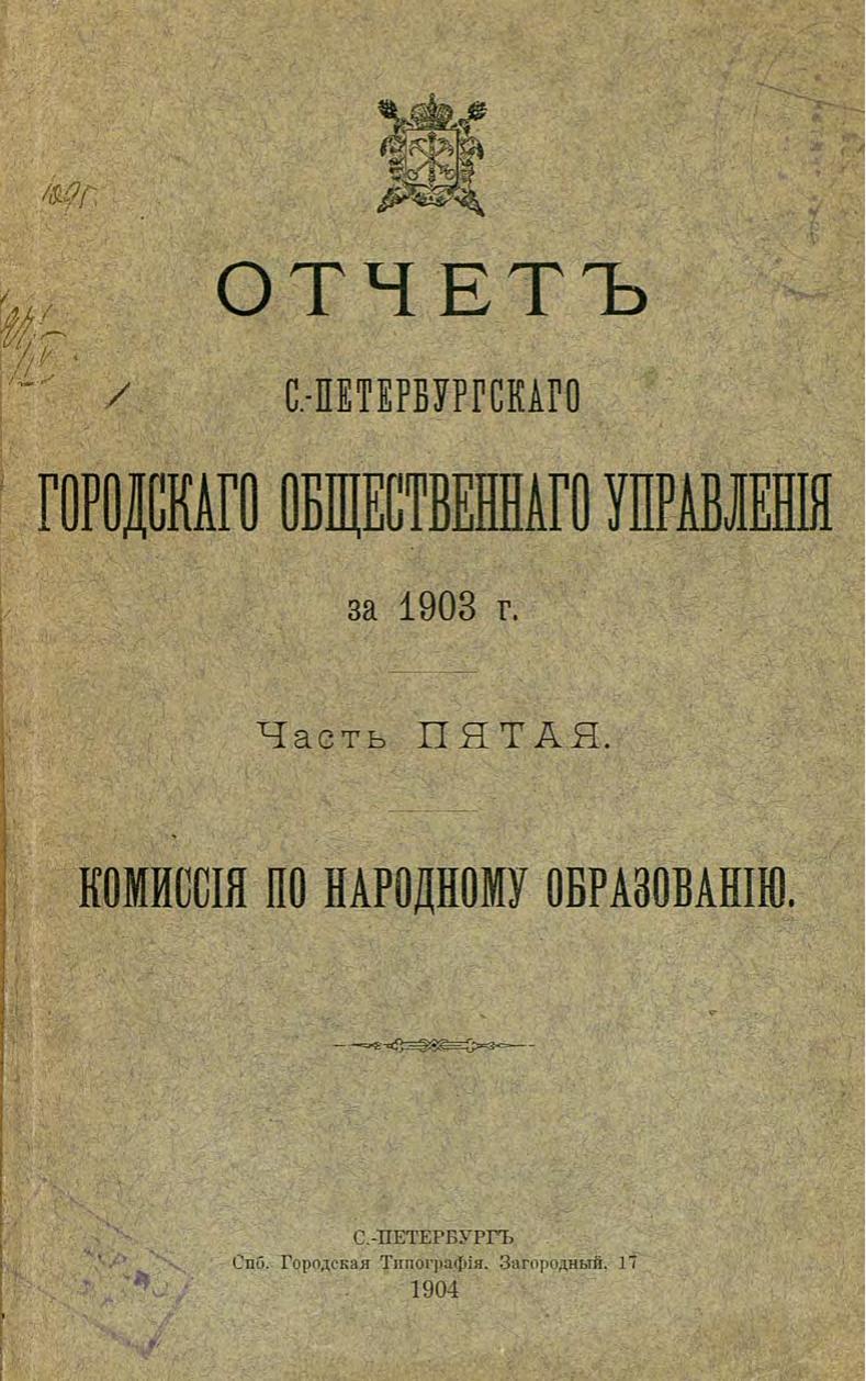 Отчет городской управы за 1903 г. Ч. 5 : Комиссия по народному образованию