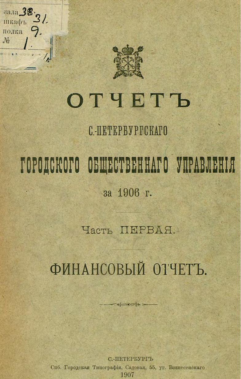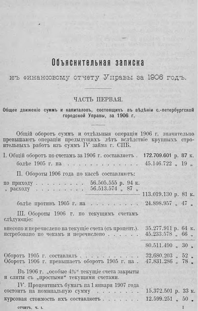 Отчет городской управы за 1906 г. Ч. 1 : Финансовый отчет