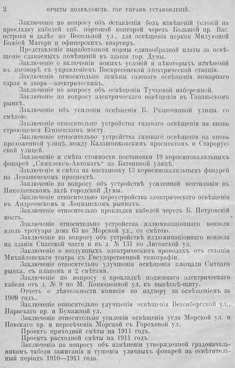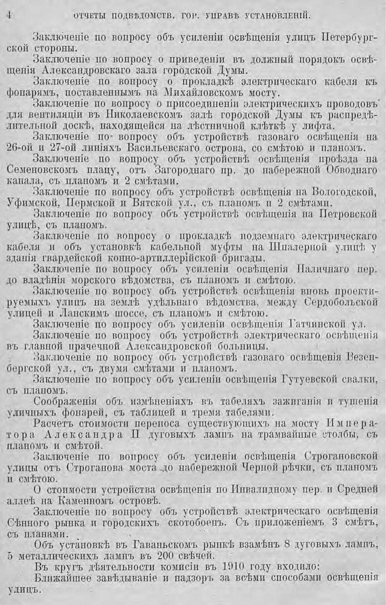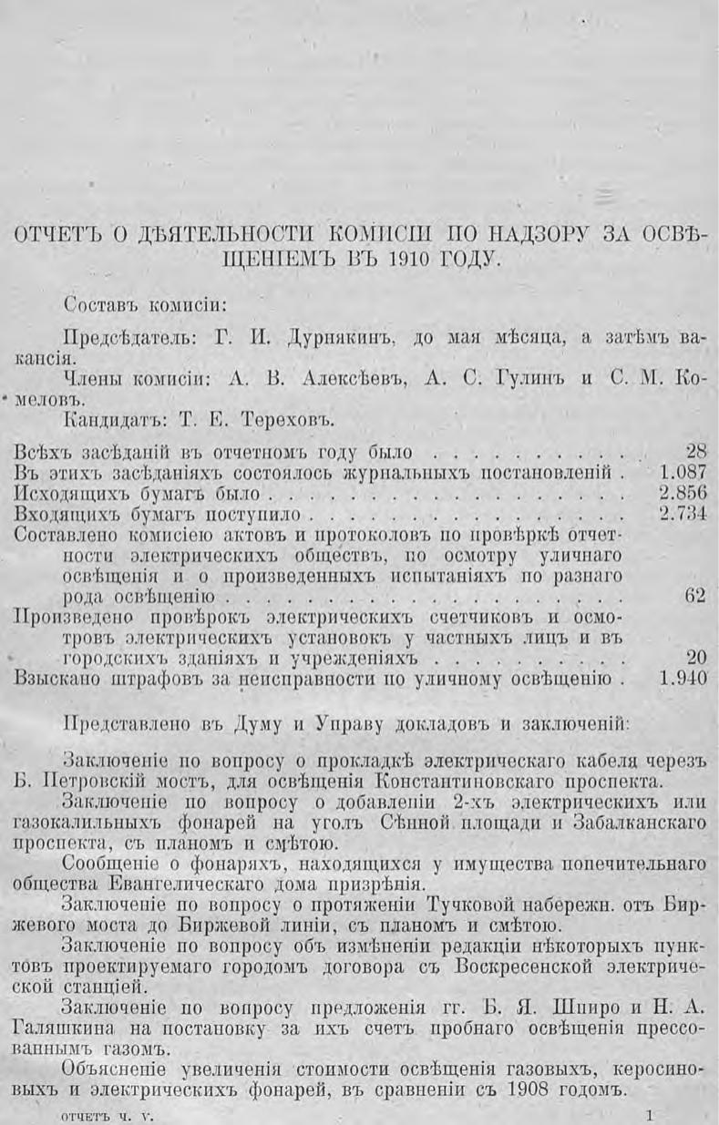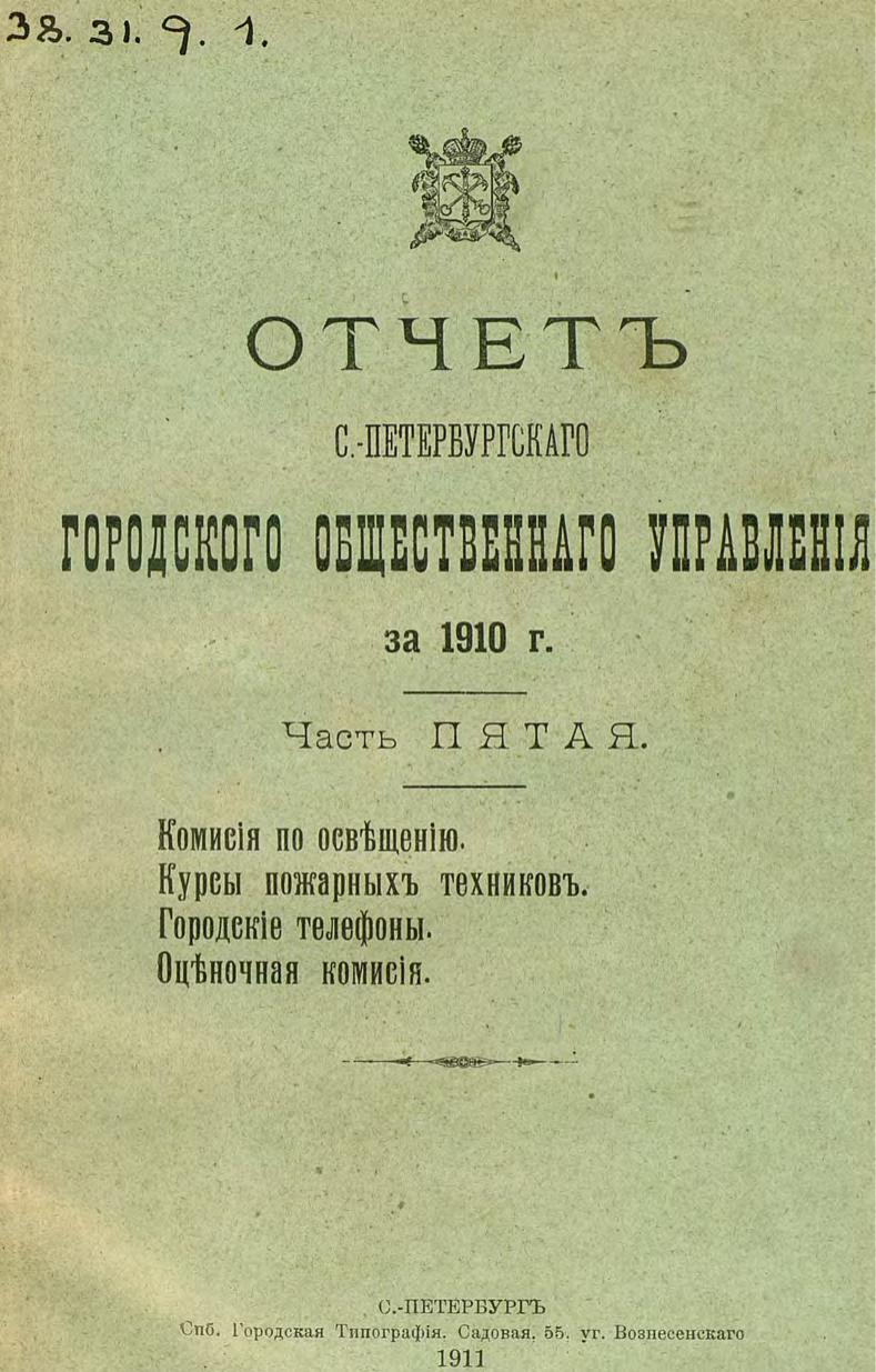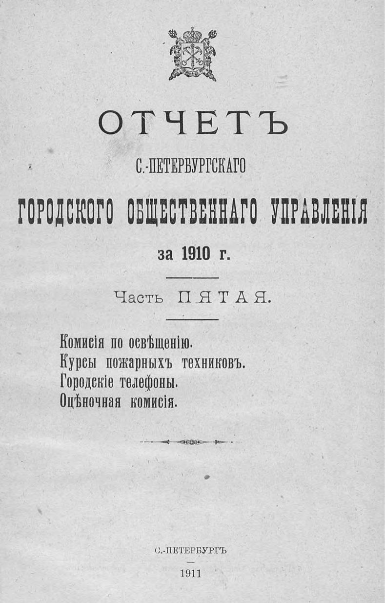Отчет городской управы за 1910 г. Ч. 5-6 : Комиссия по освещению. Курсы пожарных техников. Городские телефоны. Оценочная комиссия. Особое присутствие по разбору и призрению нищих. Пожарная комиссия. Комиссия по водоснабжению