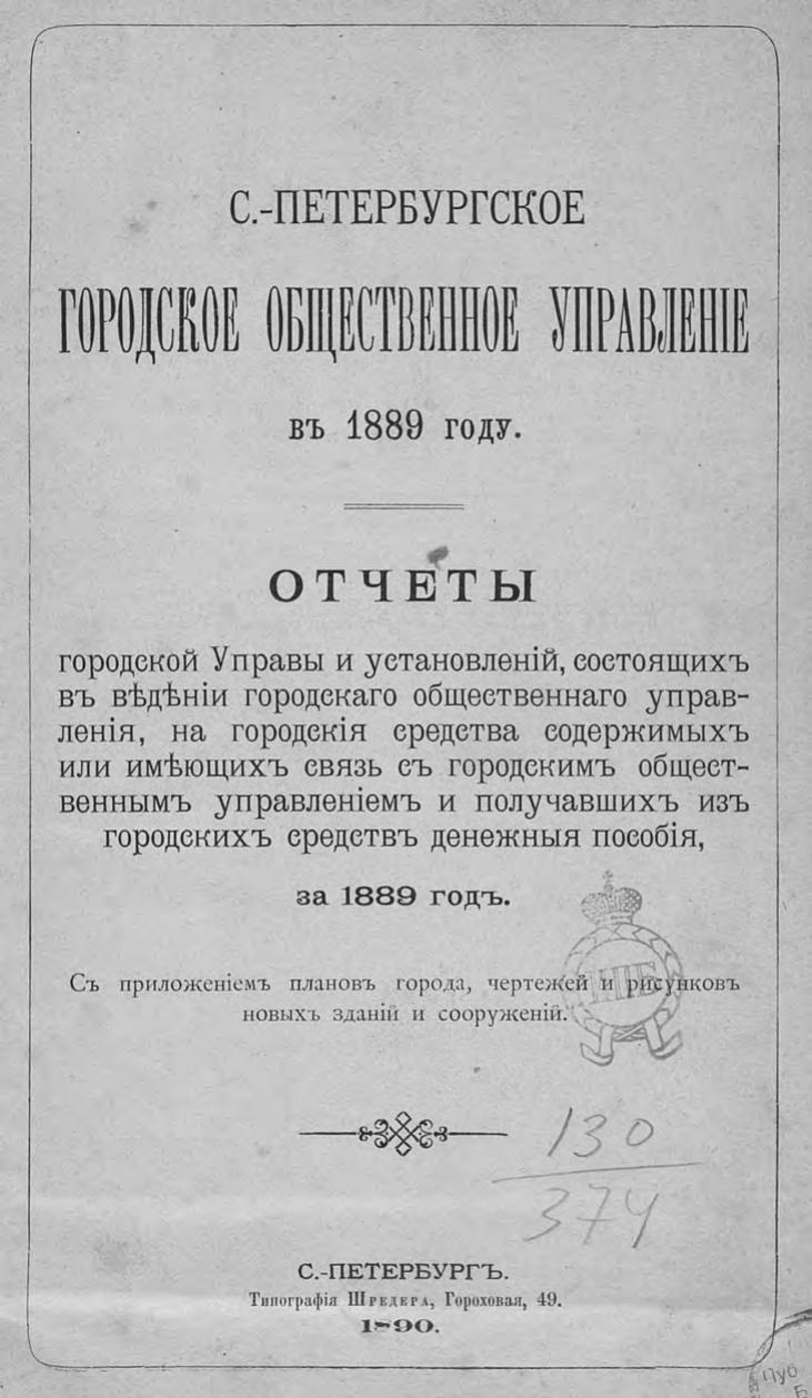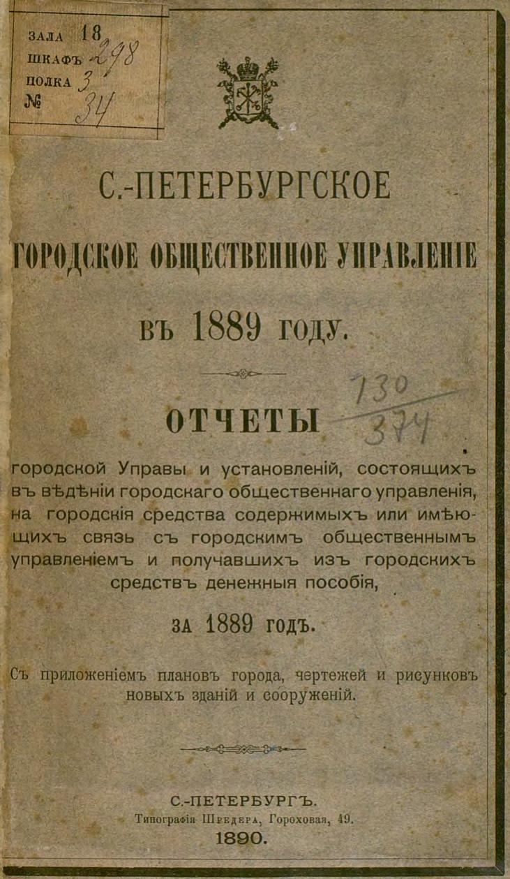 Отчет городской управы за 1889 г. С прил. планов города, чертежей и рис. новых зданий и сооружений