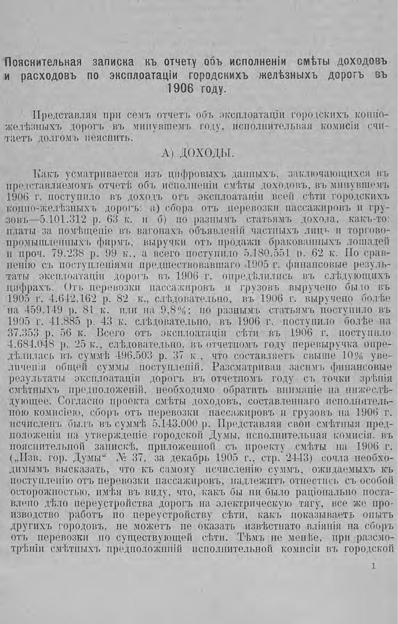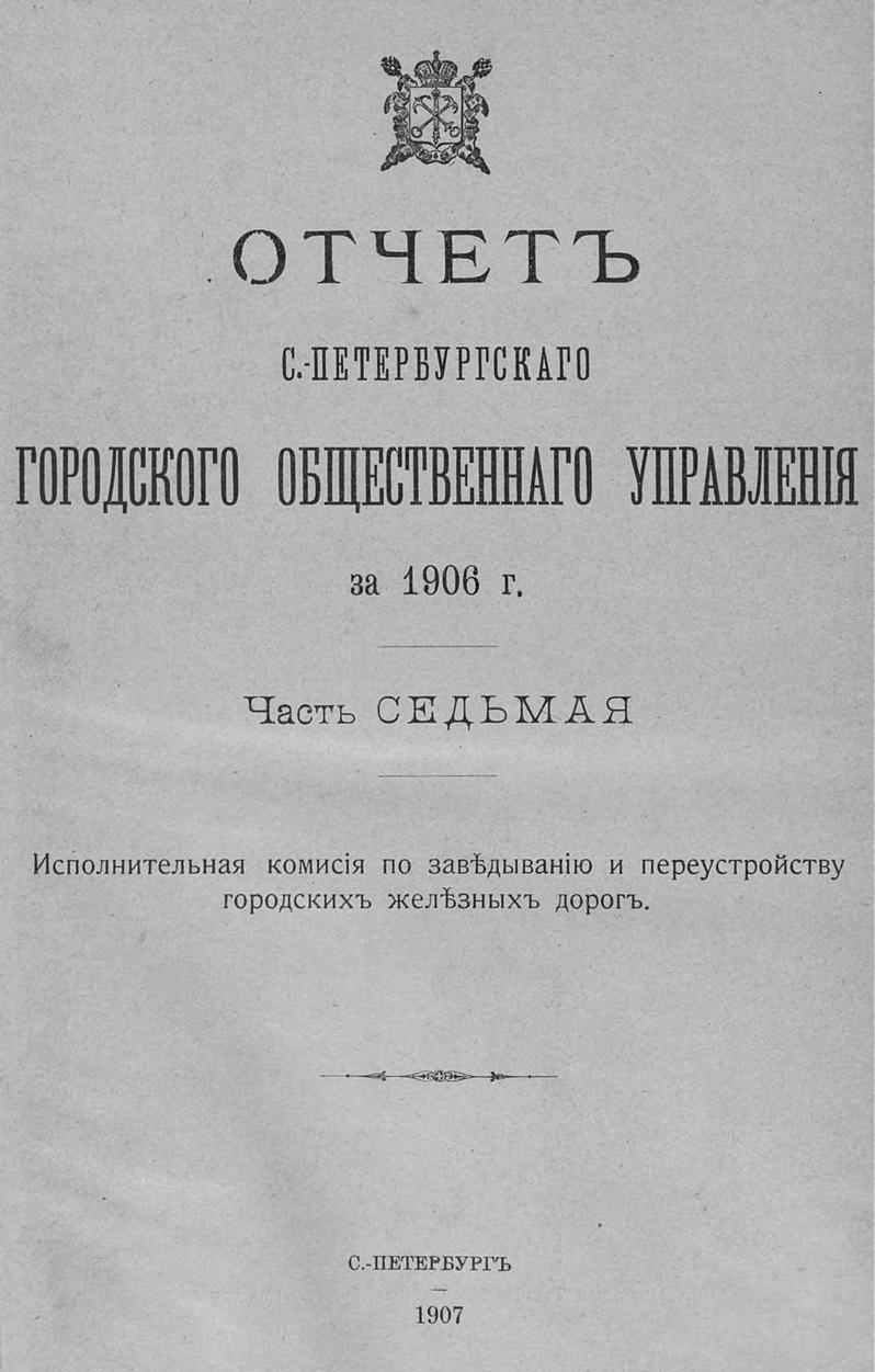 Отчет городской управы за 1906 г. Ч. 7 : Исполнительная комиссия по заведыванию и переустройству городских железных дорог