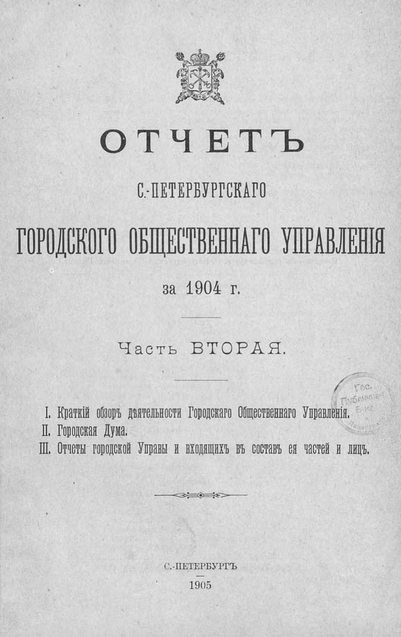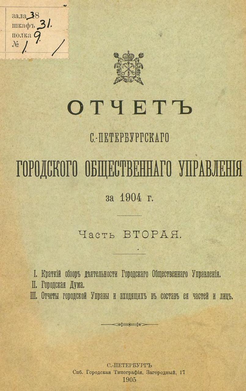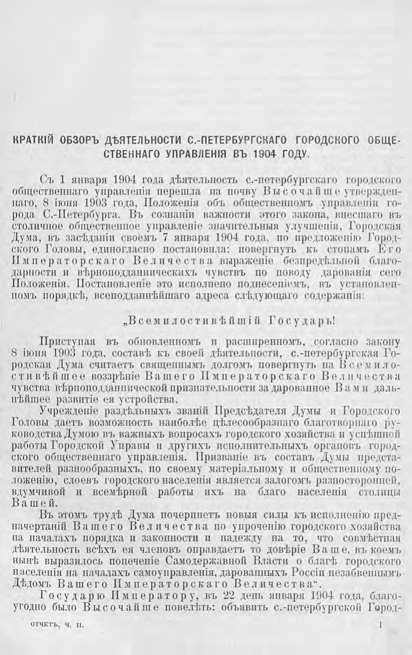 Отчет городской управы за 1904 г. Ч. 2-3 : Краткий обзор деят-сти Город. обществ. управления. Городская дума. Отчеты Город. управы и входящих в состав ее частей и лиц. Городские телефоны