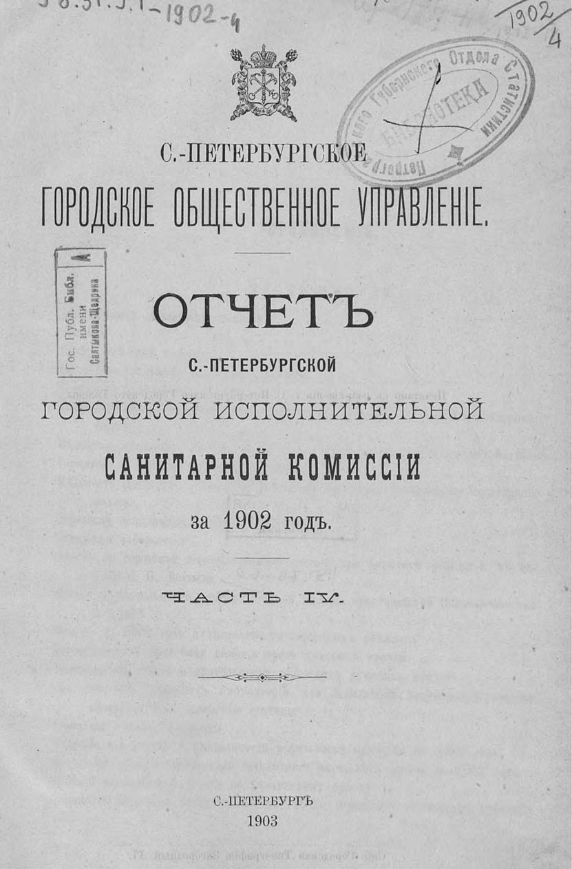 Отчет городской управы за 1902 г. Ч. 4 : Отчет С.-Петербургской городской исполнительной санитарной комиссии
