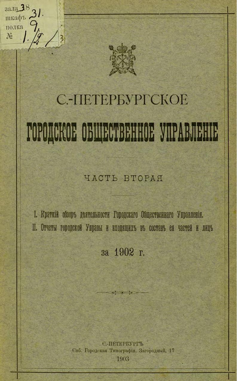 Отчет городской управы за 1902 г. Ч. 2-3 : Краткий обзор деятельности Город. обществ. управления. Отчеты Город. управы и входящих в ее состав частей и лиц. Городские телефоны
