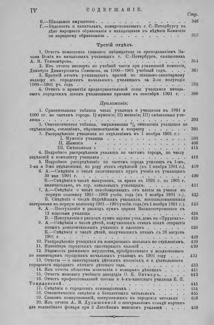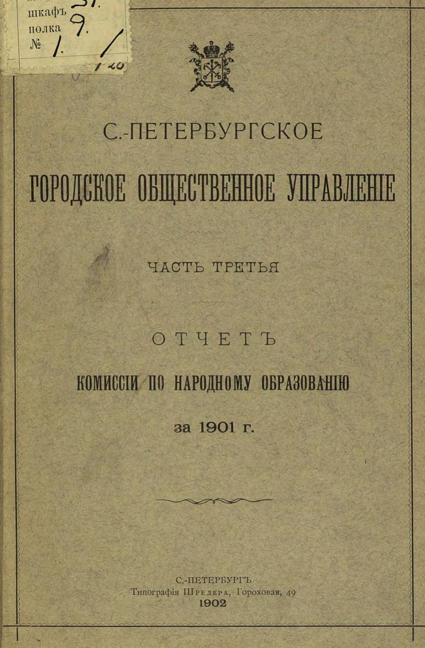 Отчет городской управы за 1901 г. Ч. 3-4 : Отчет Комиссии по народному образованию. Комиссии: санитарная, по надзору за освещением столицы, по заведыванию городскими конно-железными дорогами, по постройке постоянного через р. Неву Троицкого моста