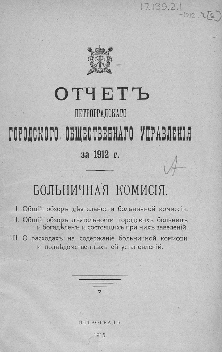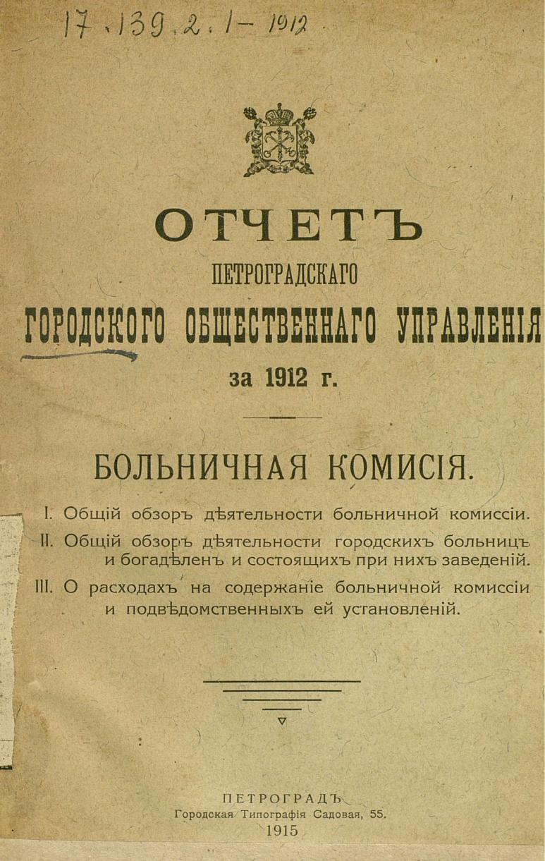 Отчет городской управы за 1912 г. Ч. 8 : Больничная комиссия
