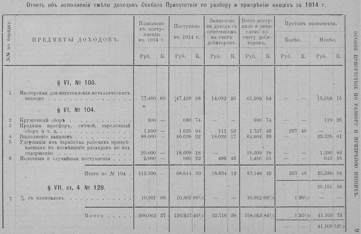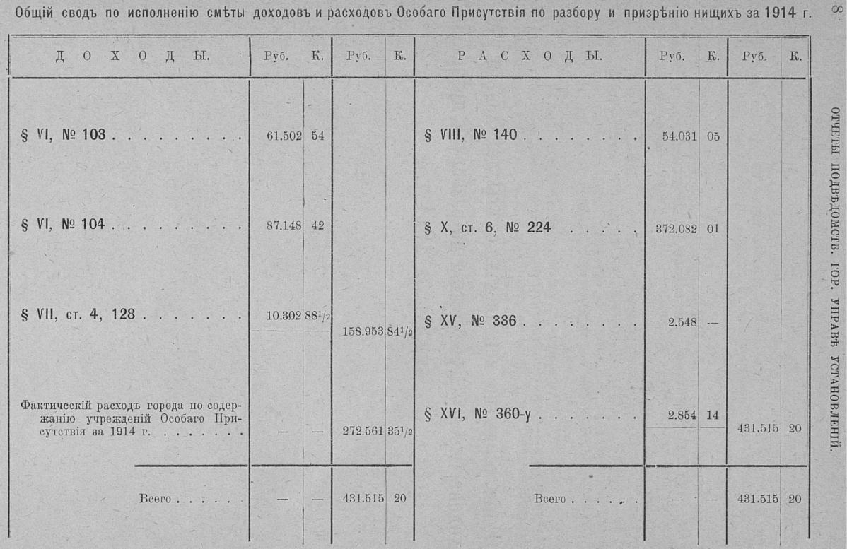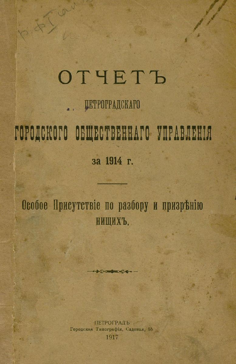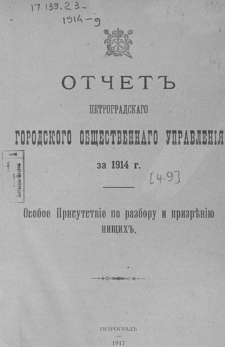 Отчет городской управы за 1914 г. Ч. 9 : Особое присутствие по разбору и призрению нищих