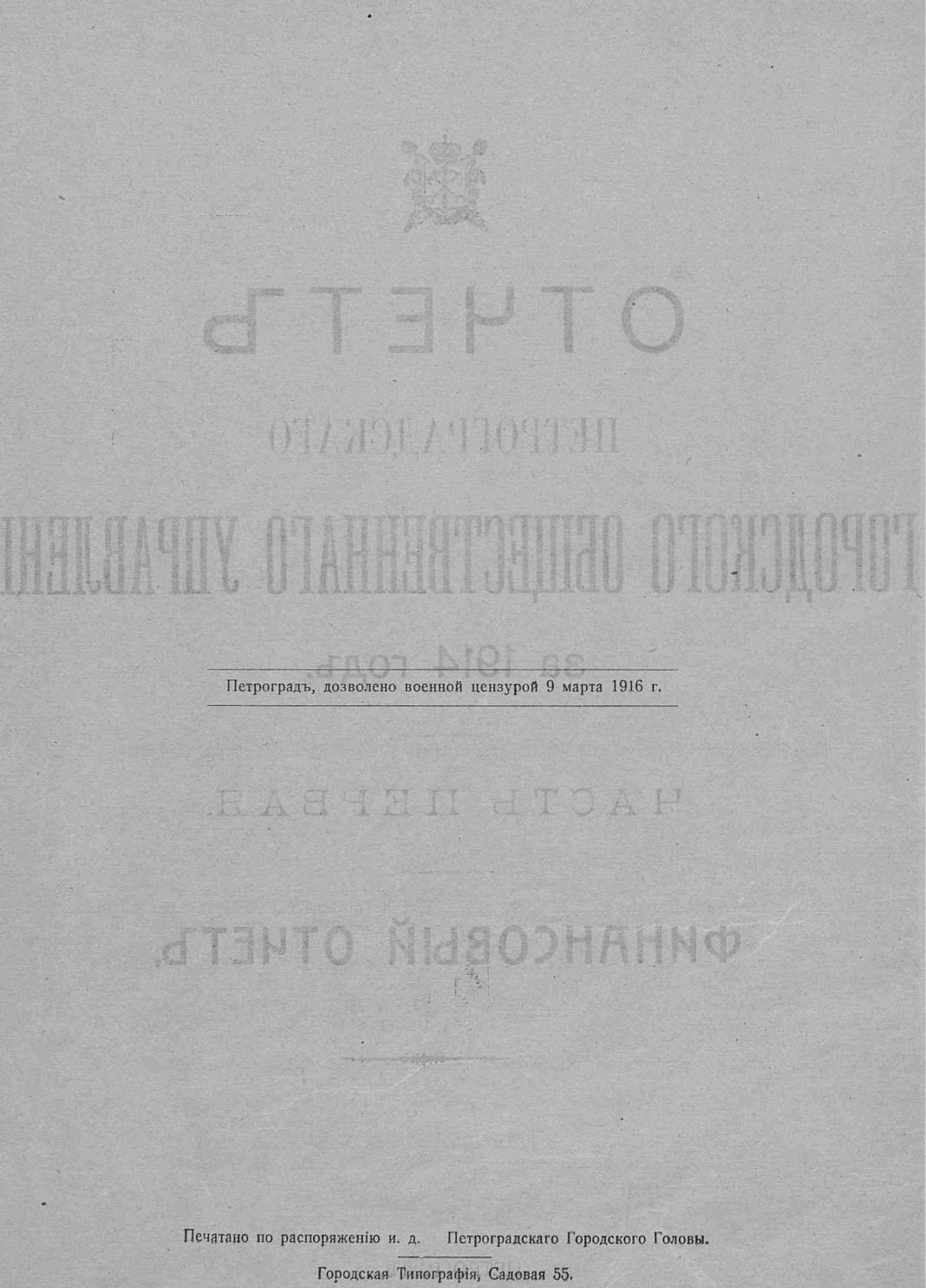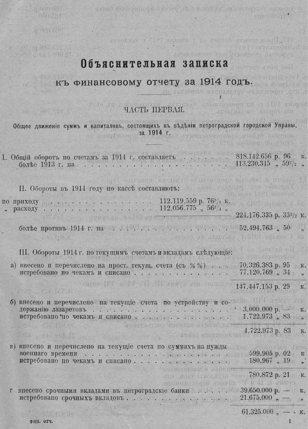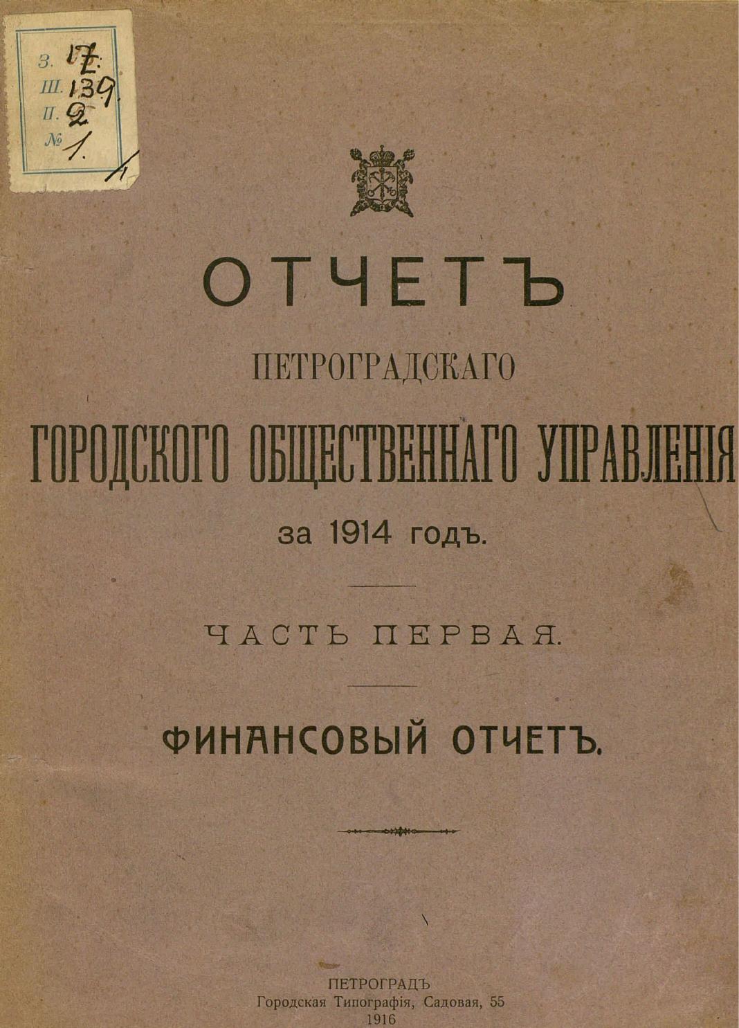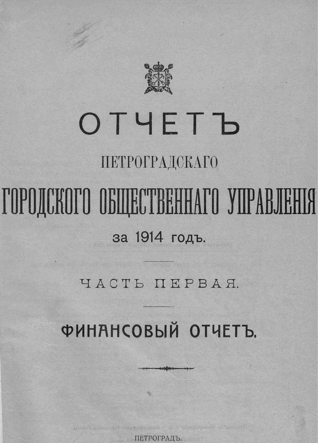 Отчет городской управы за 1914 г. Ч. 1 : Финансовый отчет
