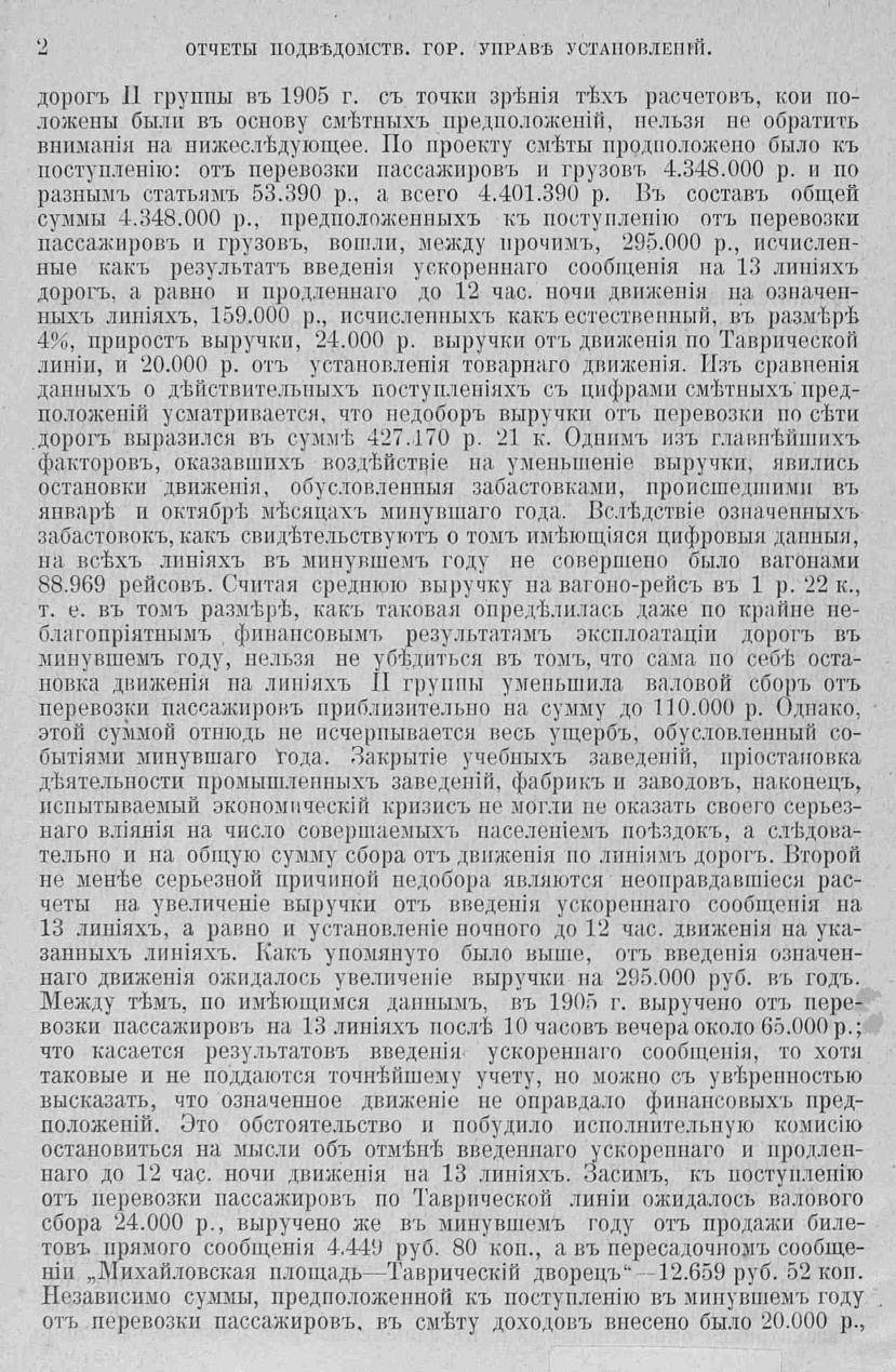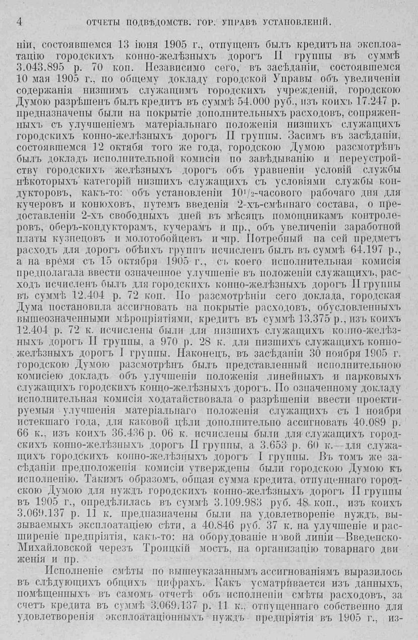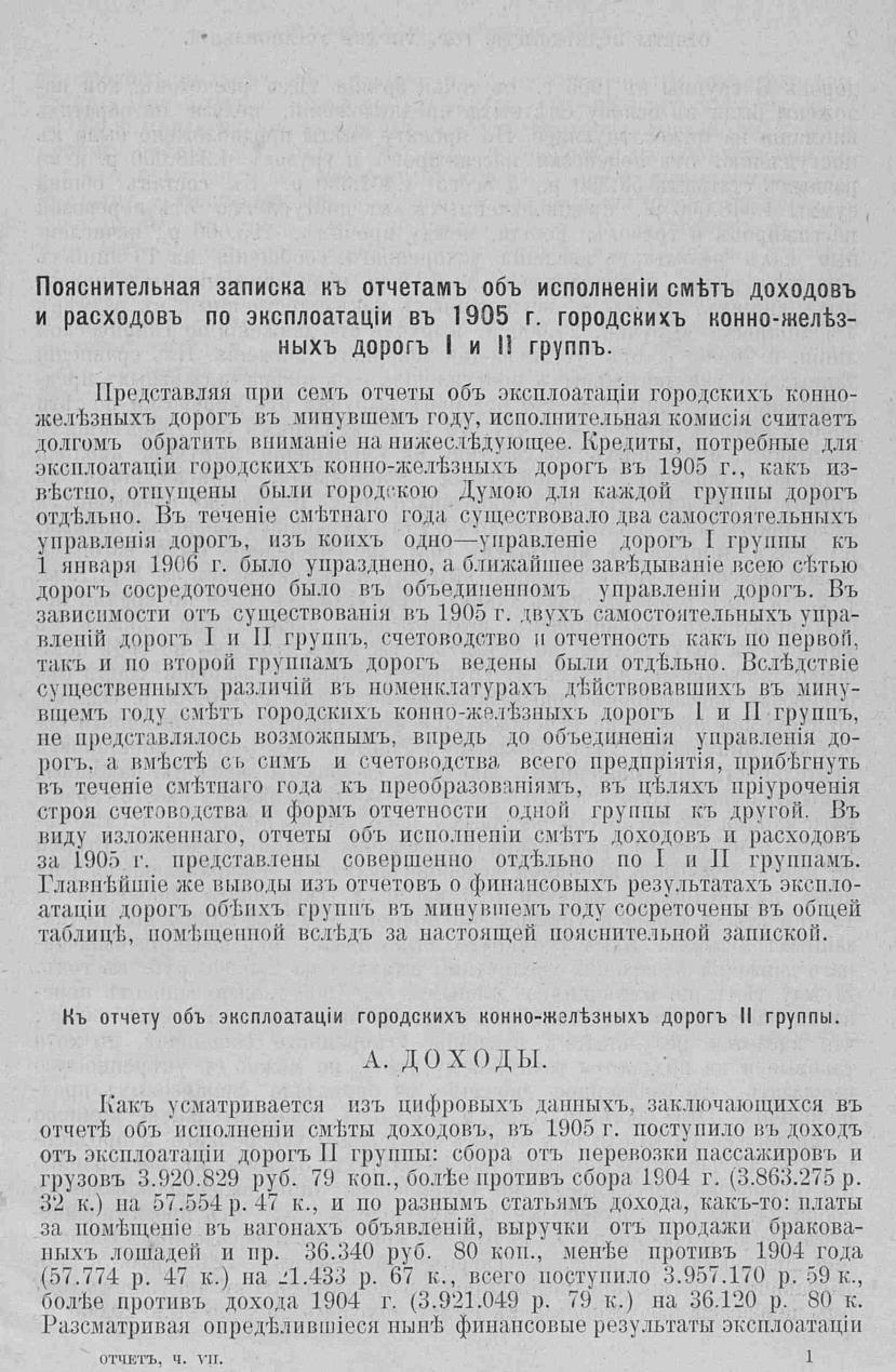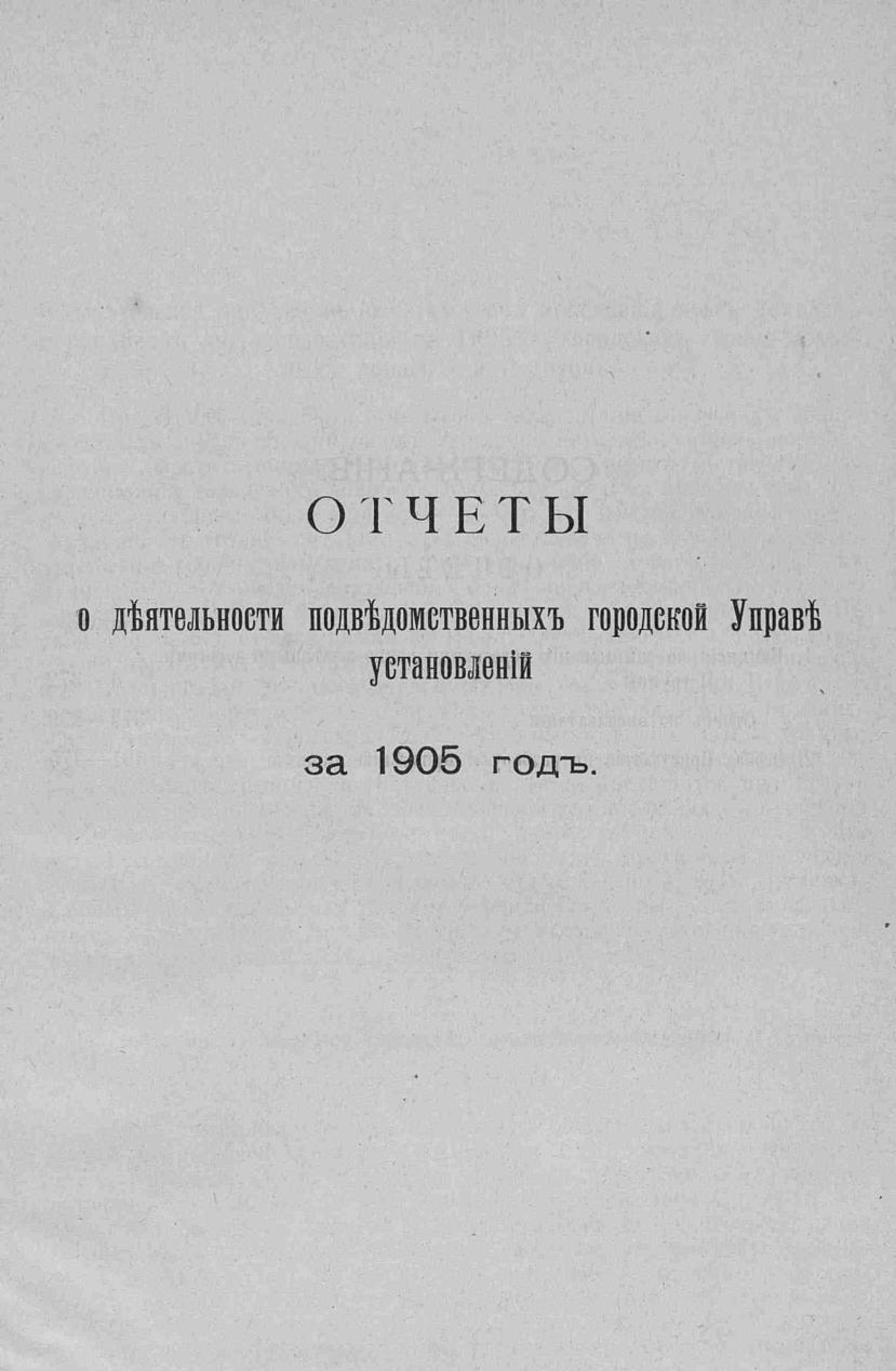Отчет городской управы за 1905 г. Ч. 7 : Комиссия по заведыванию городскими конно-железными дорогами I и II групп; Особое присутствие по разбору и призрению нищих