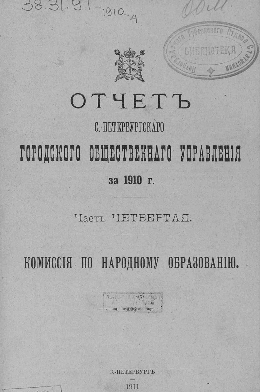 Отчет городской управы за 1910 г. Ч. 4 : Комиссия по народному образованию