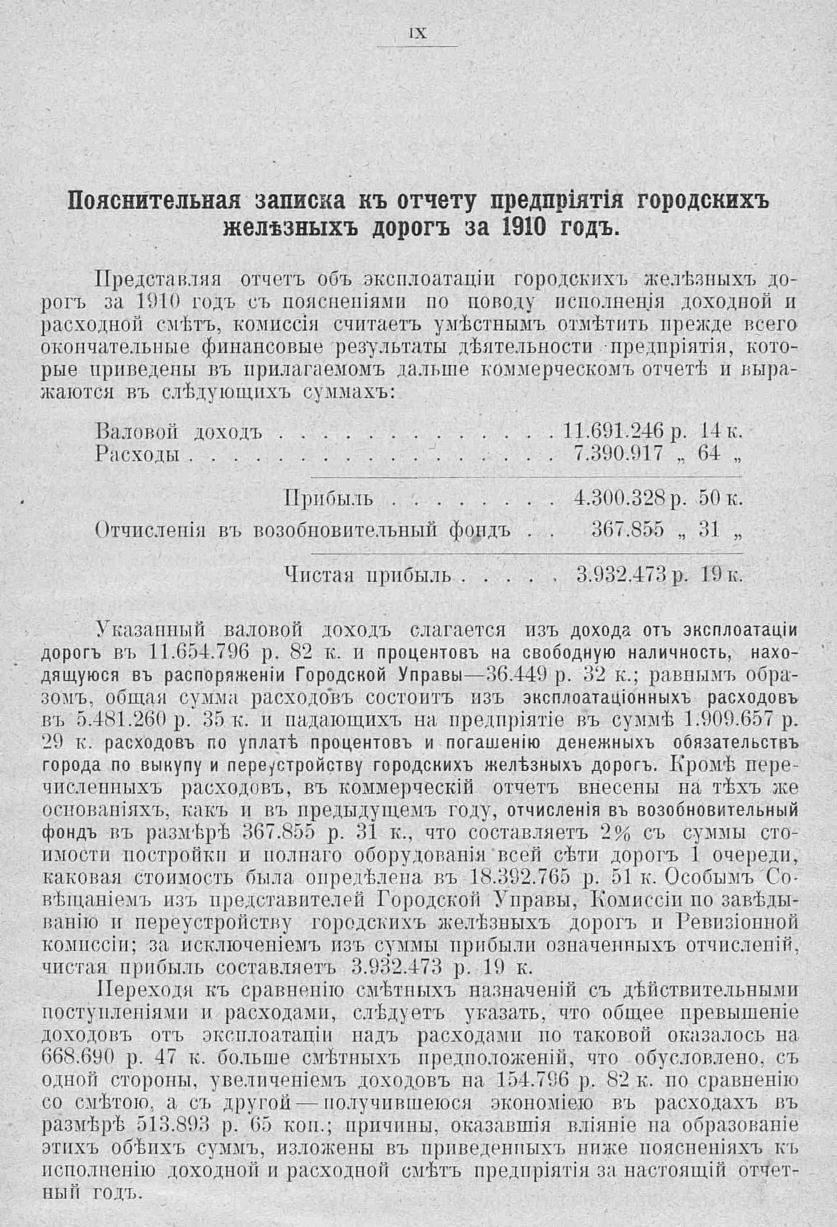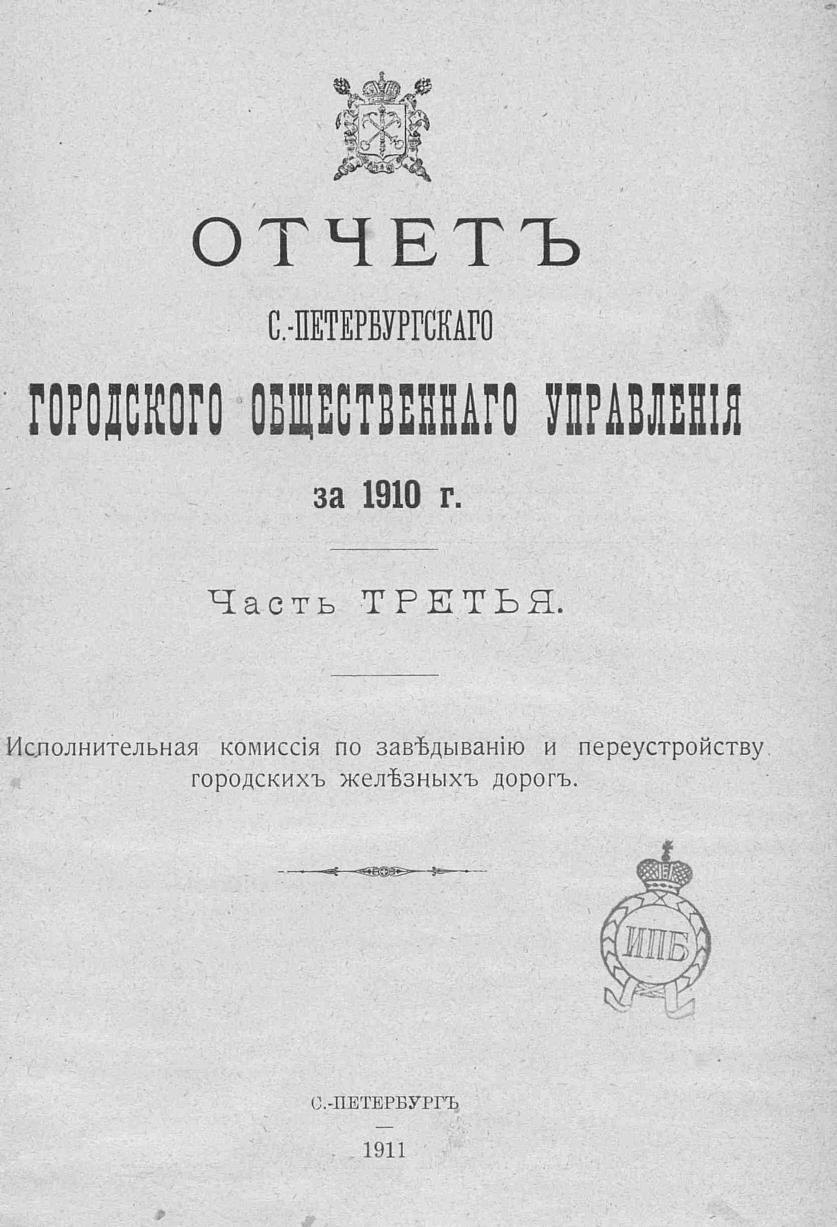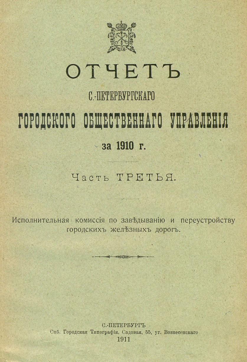Отчет городской управы за 1910 г. Ч. 3 : Исполнительная комиссия по заведыванию и переустройству городских железных дорог