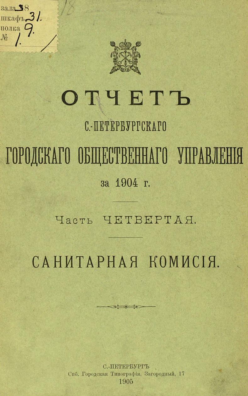 Отчет городской управы за 1904 г. Ч. 4-5 : Санитарная комиссия; Комиссия по народному образованию