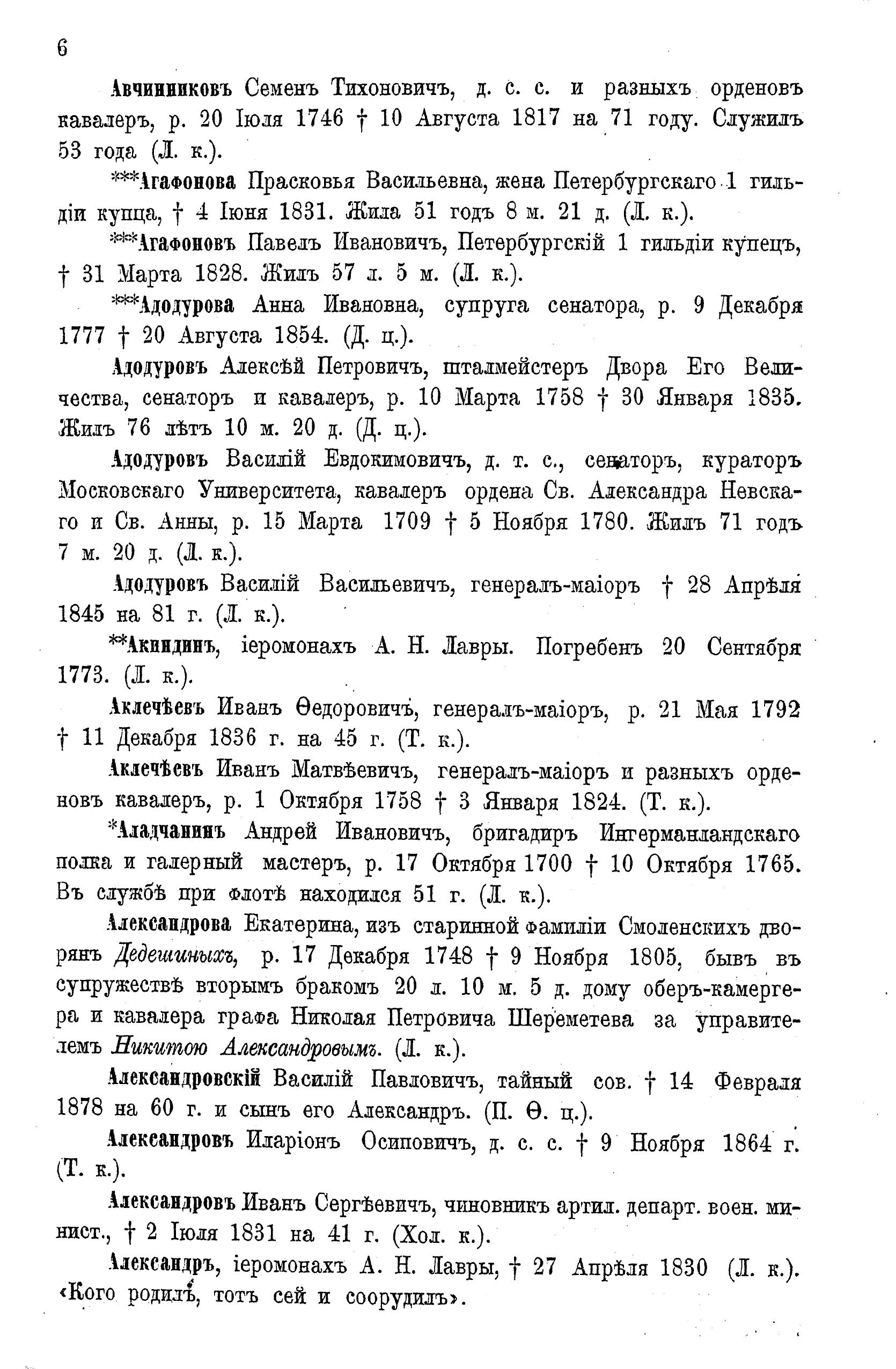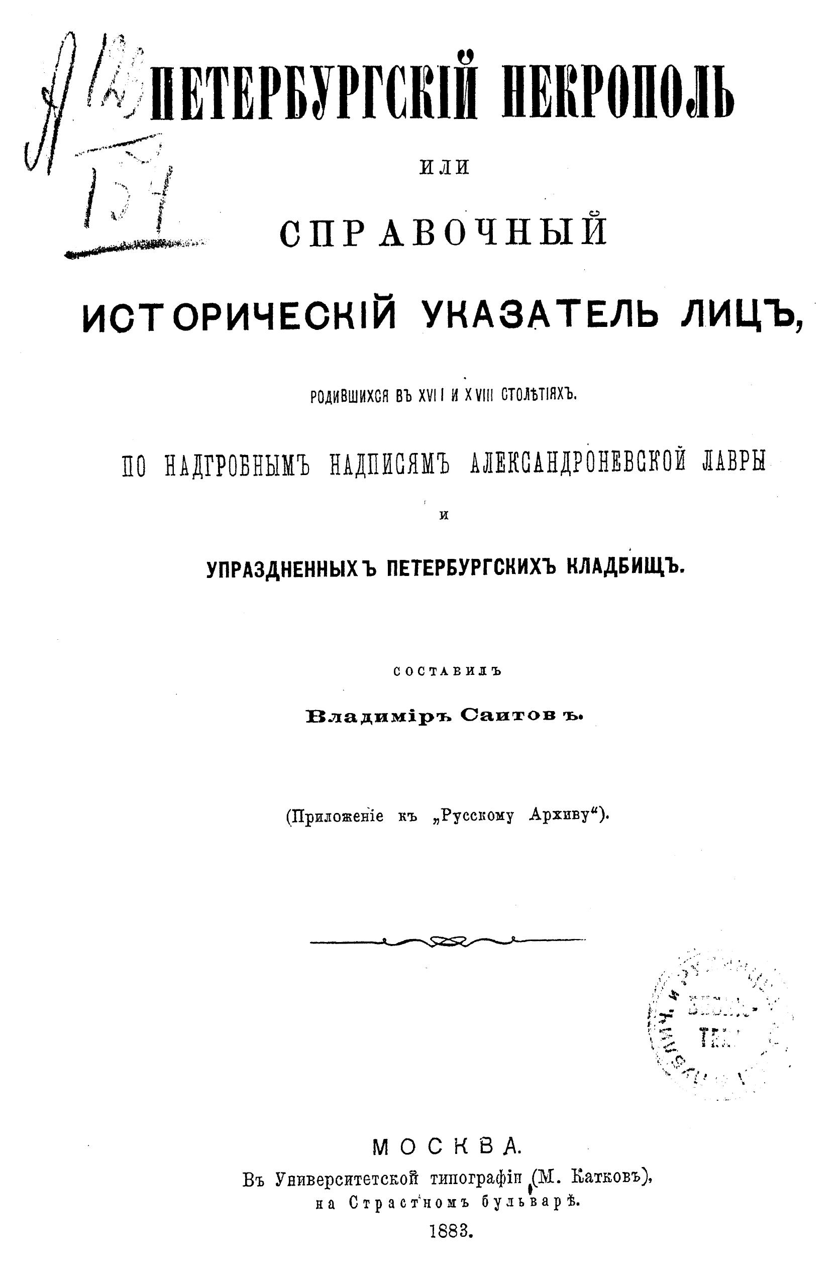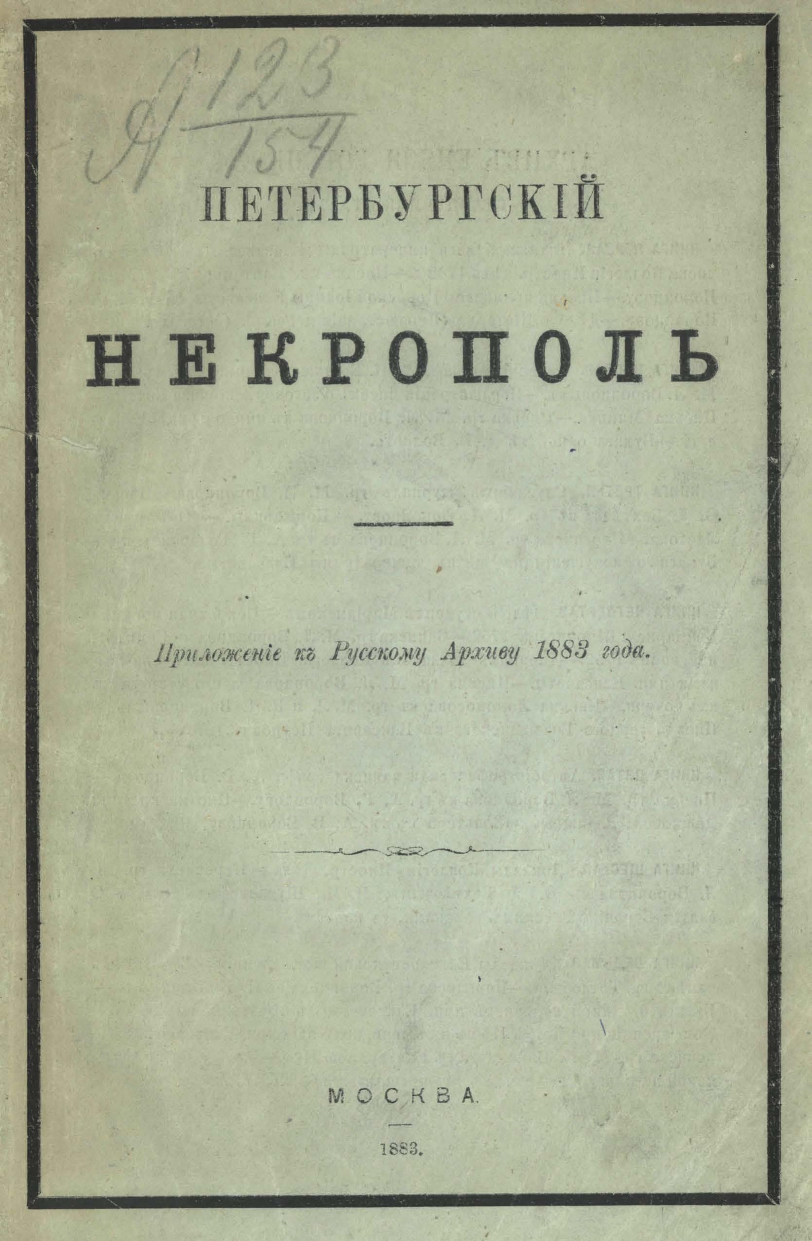 Петербургский некрополь или Справочный исторический указатель лиц, родившихся в XVII и XVIII столетиях