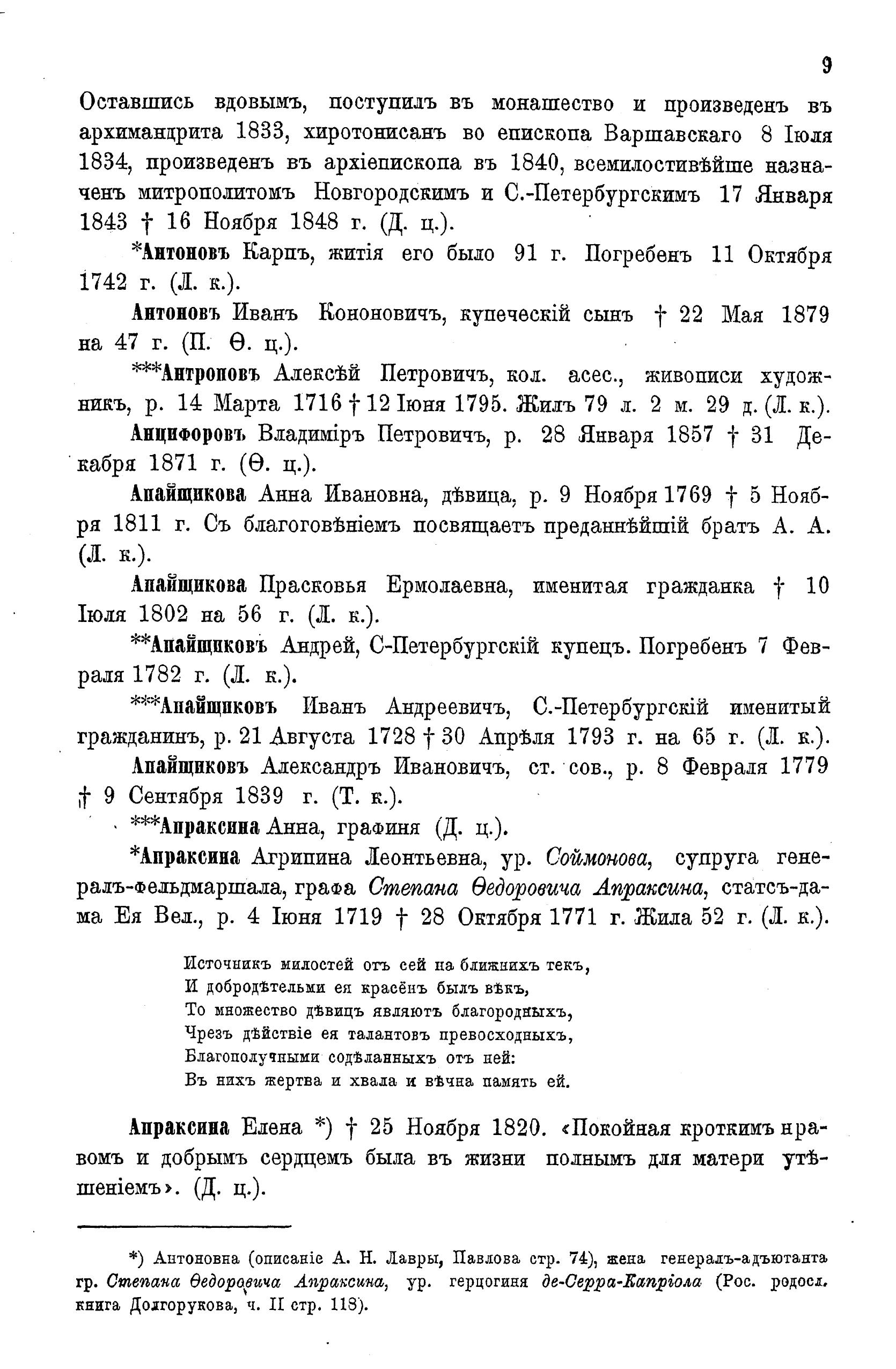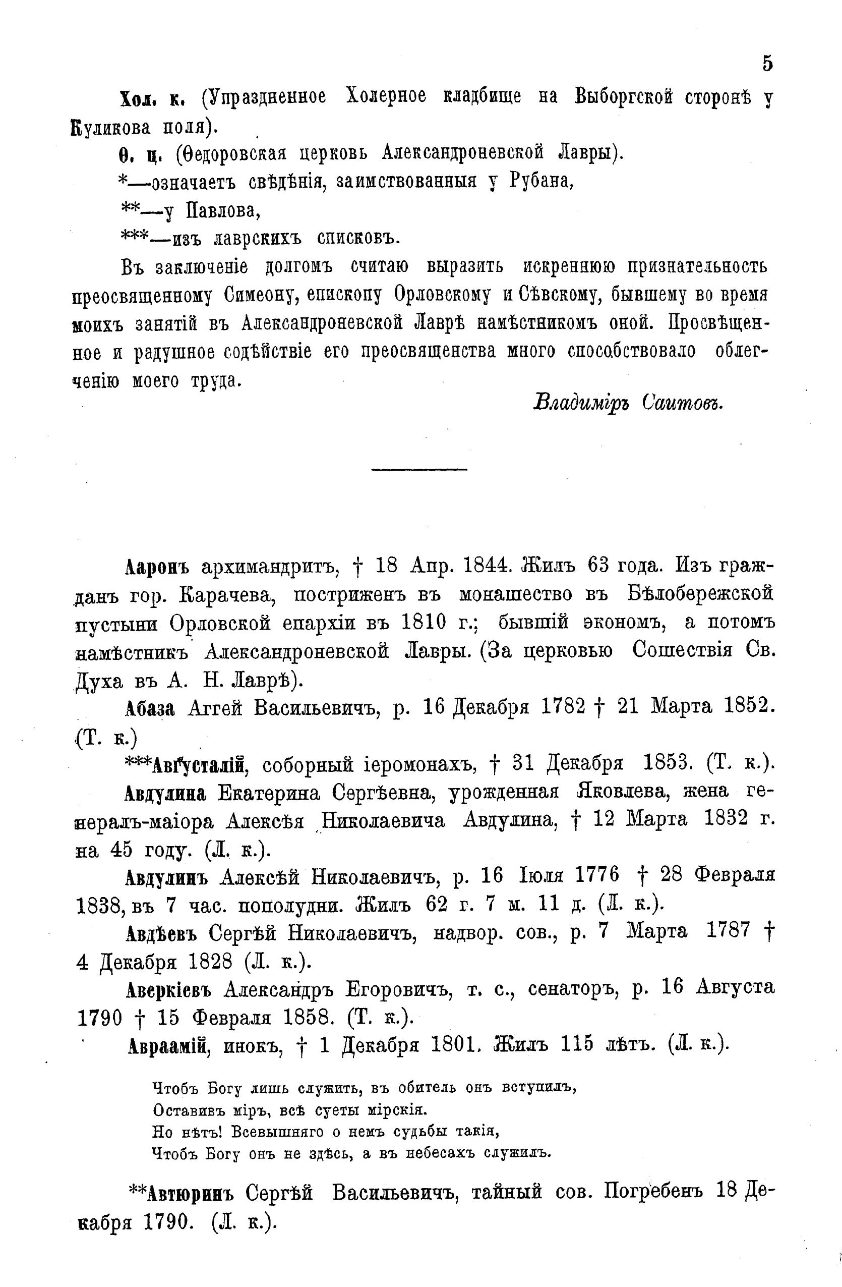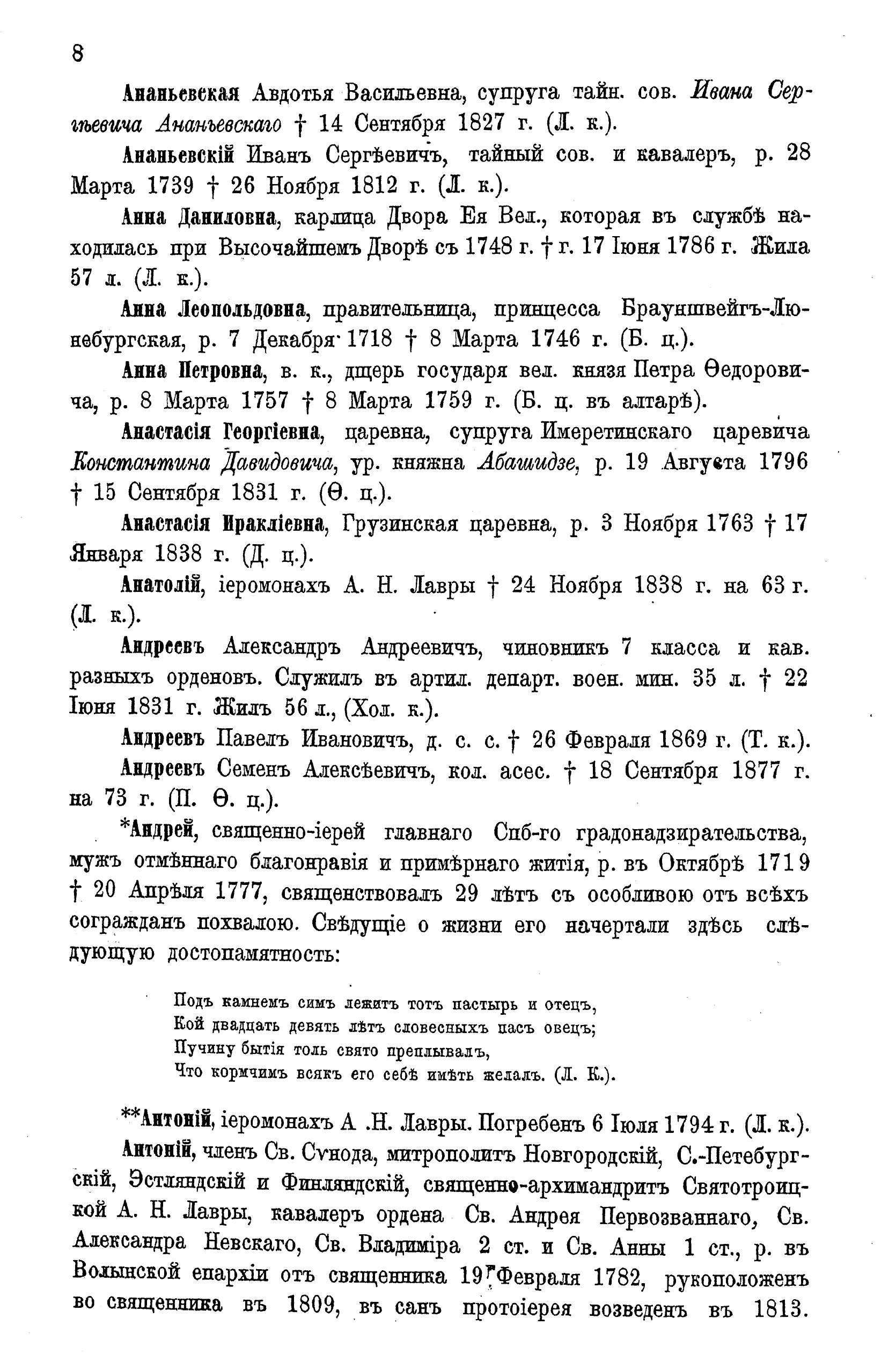 Петербургский некрополь или Справочный исторический указатель лиц, родившихся в XVII и XVIII столетиях