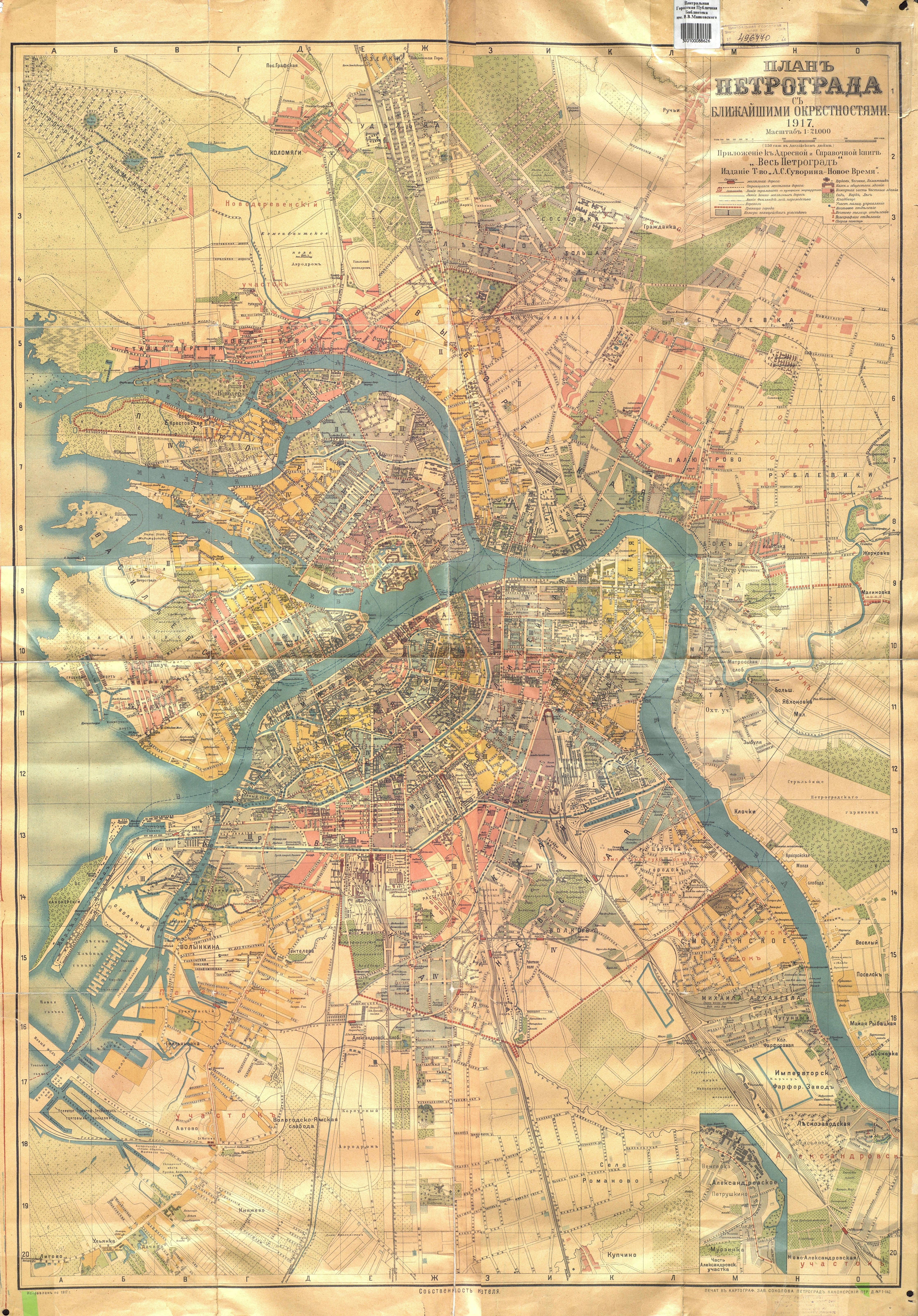 План Петрограда с ближайшими окрестностями, 1917 : Прилож. к адресной и справочной книге "Весь Петроград",