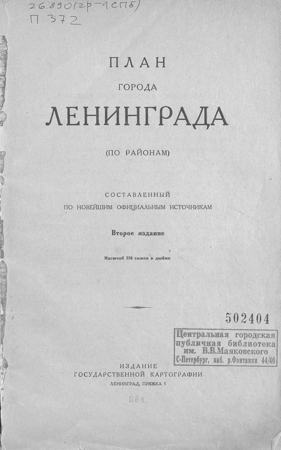 Перешедшие в общественное достояние материалы электронного фонда ЦГПБ им. В.В. Маяковского. Сведения о издательстве или типографии: Изд-во госуд. картографии. Место издания: Л.