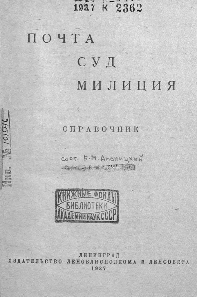 Перешедшие в общественное достояние материалы электронного фонда ЦГПБ им. В.В. Маяковского. Сведения о издательстве или типографии: Изд-во Леноблисполкома и Ленсовета. Место издания: Л.
