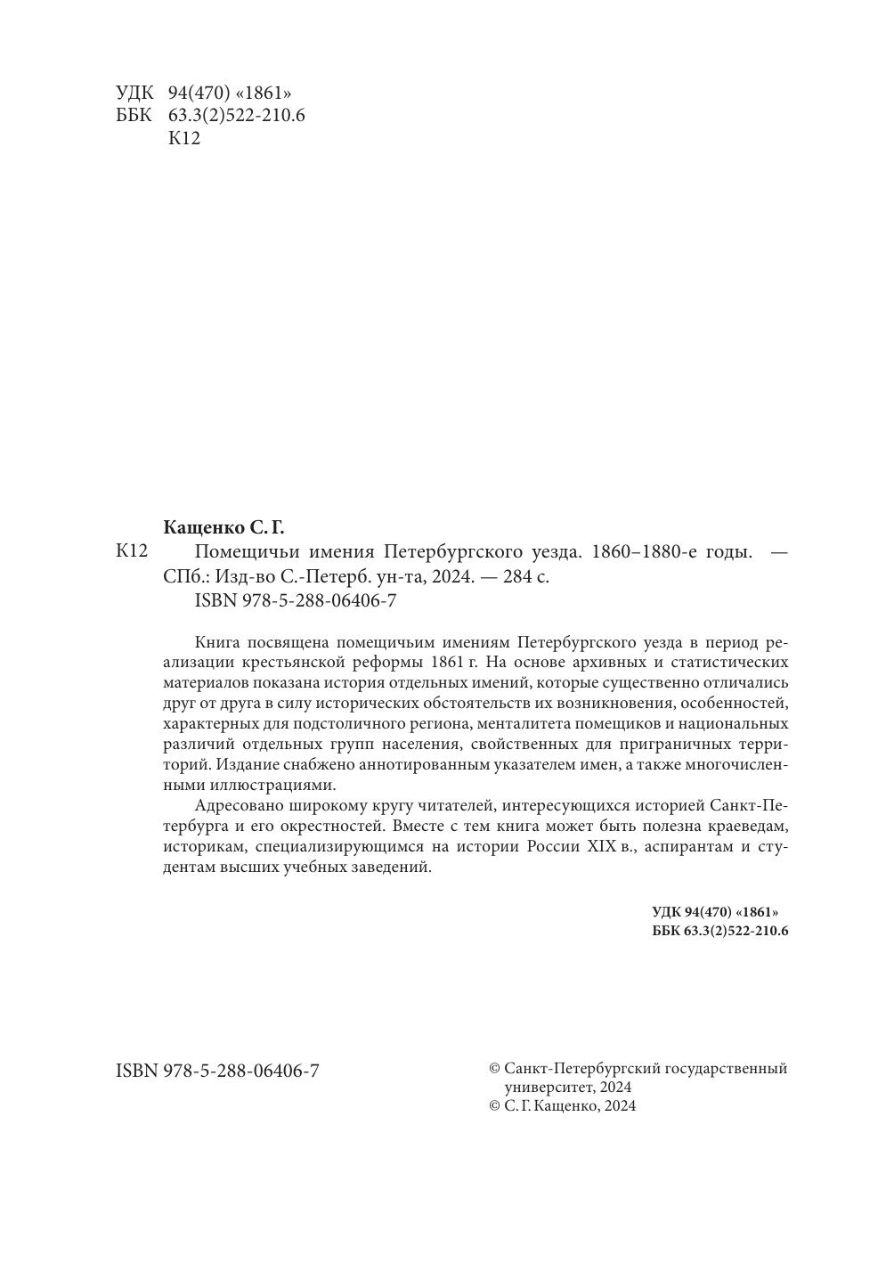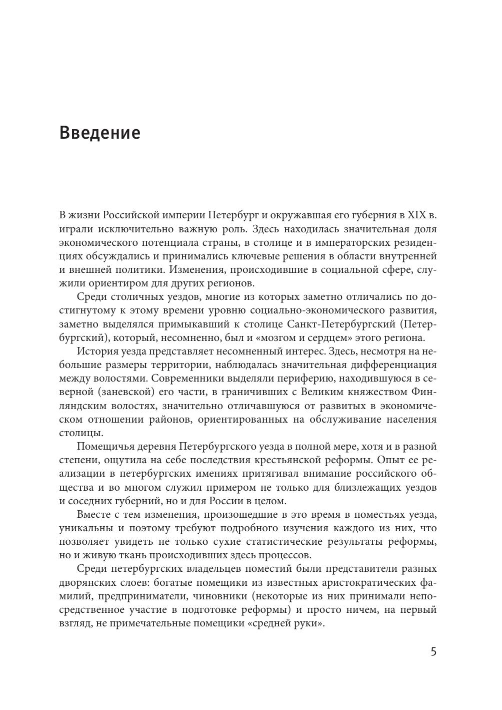 Книга посвящена помещичьим имениям Петербургского уезда в период реализации крестьянской реформы 1861 года. На основе архивных и статистических материалов показана история отдельных имений, которые существенно отличались друг от друга в силу исторических обстоятельств их возникновения, особенностей, характерных для подстоличного региона, менталитета помещиков и национальных различий отдельных групп населения, свойственных для приграничных территорий. Издание снабжено аннотированным указателем имен, а также многочисленными иллюстрациями. Адресовано широкому кругу читателей, интересующихся историей Санкт-Петербурга и его окрестностей. Вместе с тем книга может быть полезна краеведам, историкам, специализирующимся на истории России ХIХ в., аспирантам и студентам высших учебных заведений.