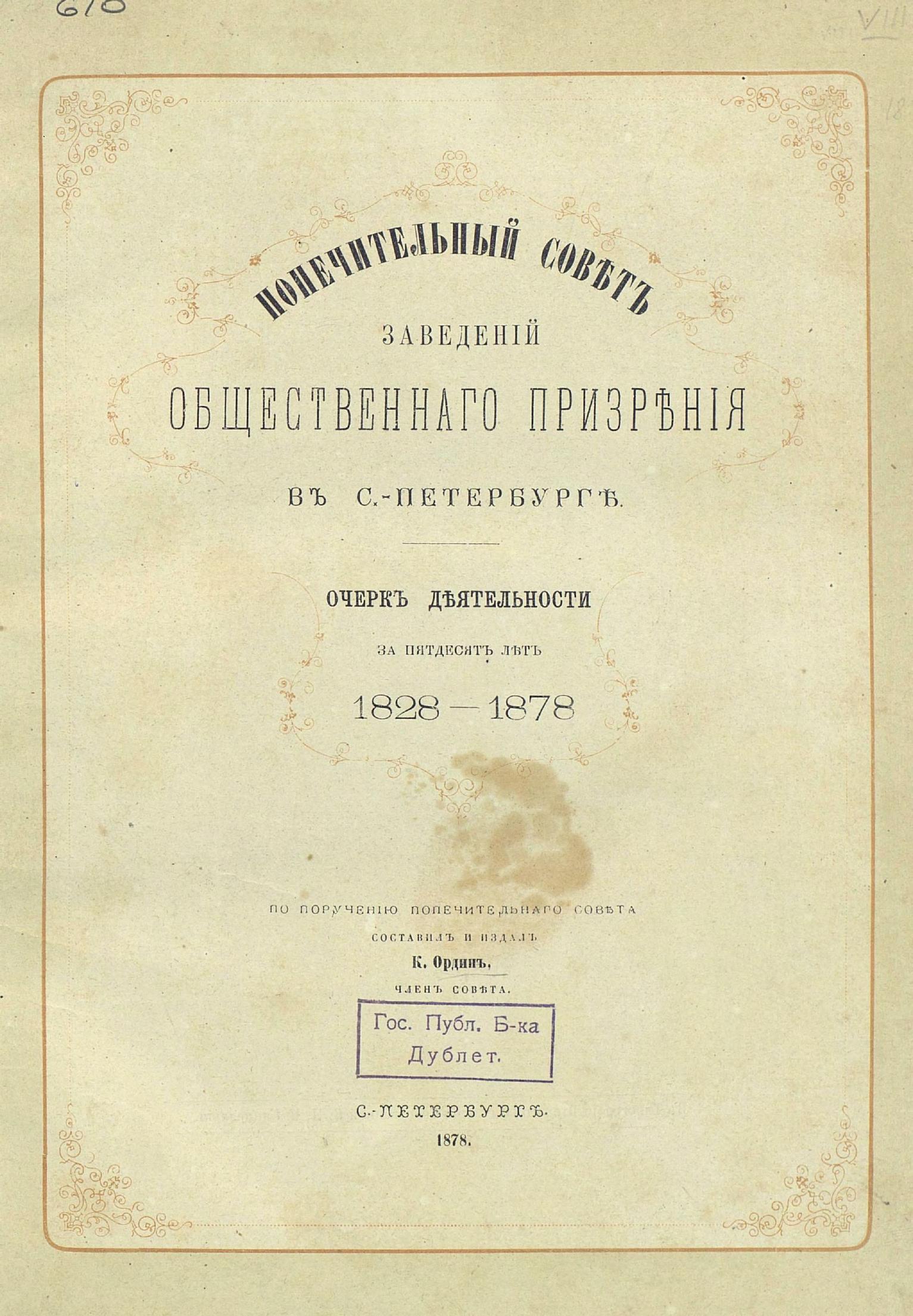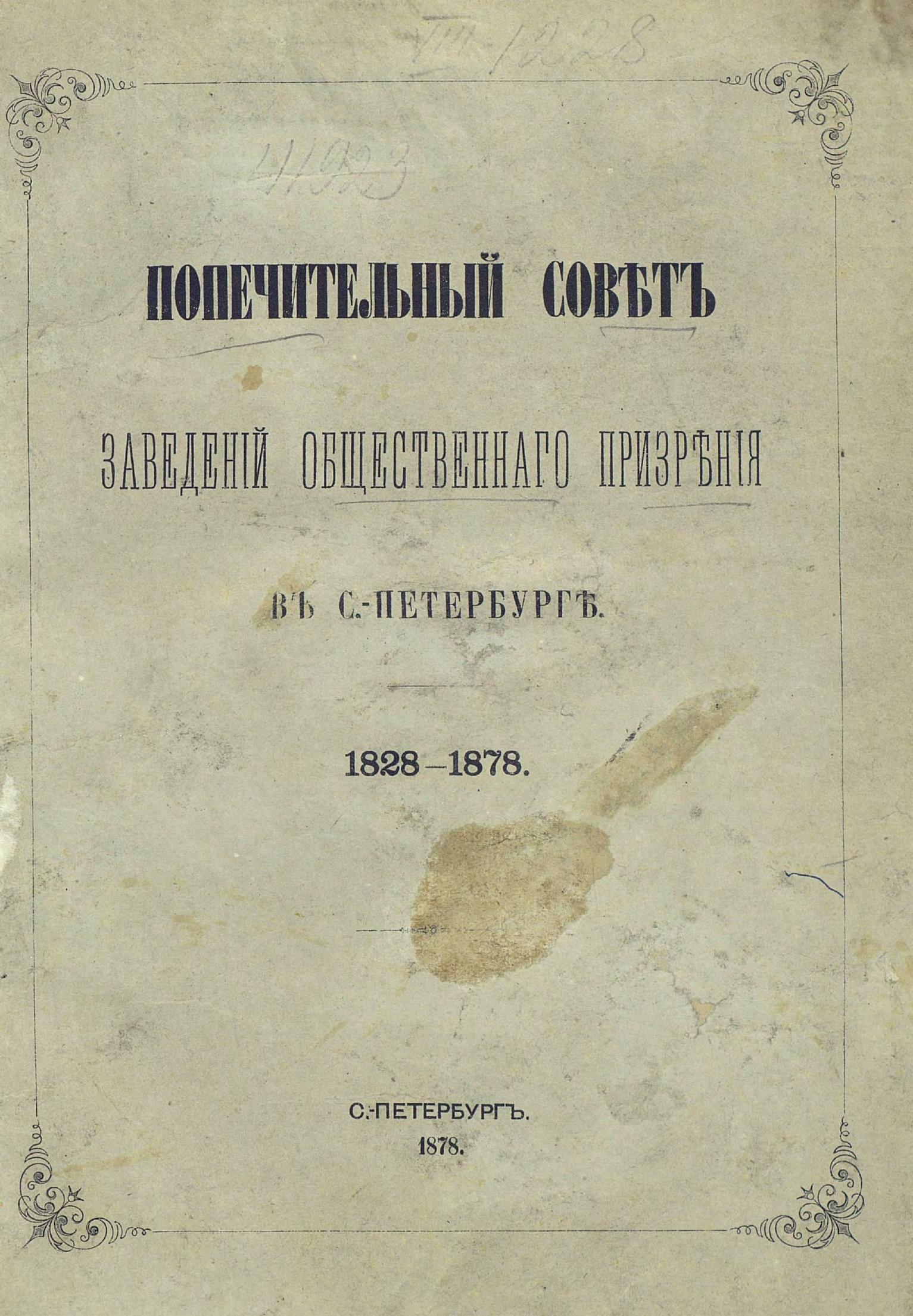 Попечительный Совет заведений общественного призрения в С.-Петербурге : Очерк деятельности за пятьдесят лет: 1828-1878