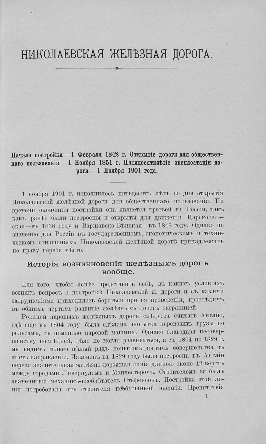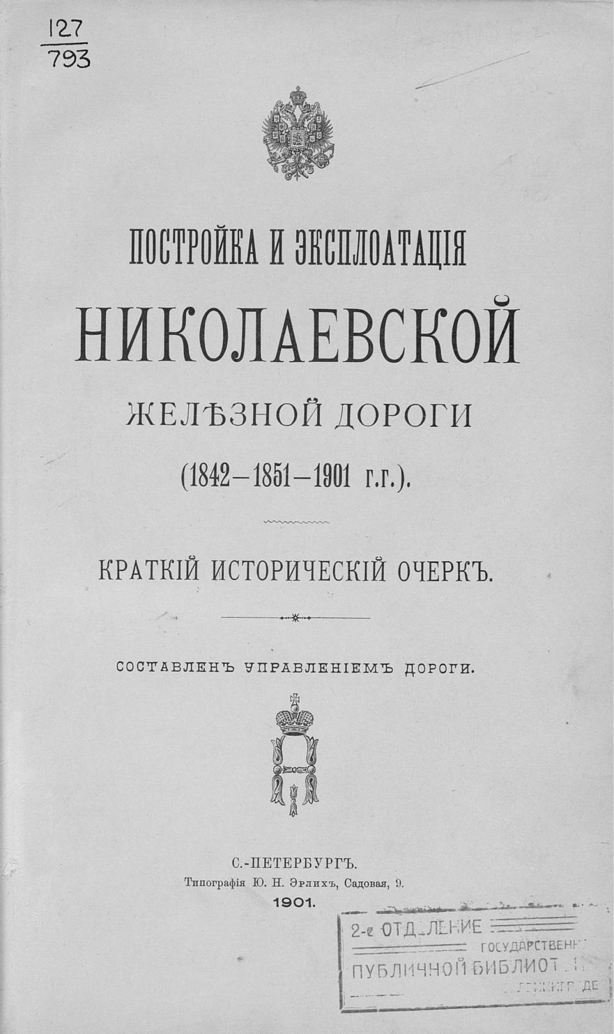 Постройка и эксплуатация Николаевской железной дороги (1842-1851-1901 гг.) : Краткий исторический очерк