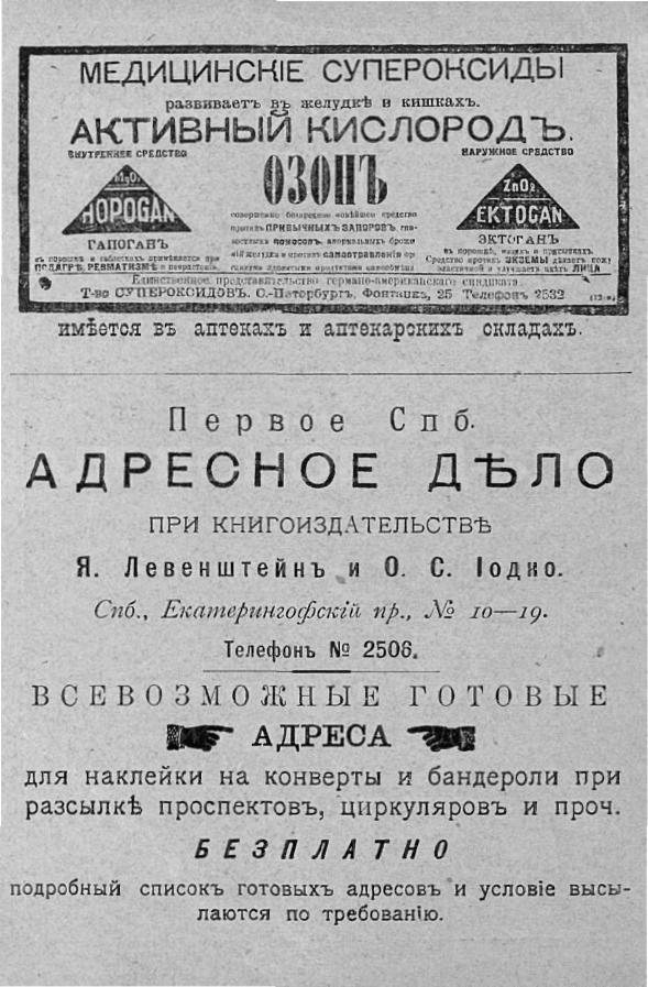 Перешедшие в общественное достояние материалы электронного фонда ЦГПБ им. В.В. Маяковского. Сведения о издательстве или типографии: книгоизд-во Я. Левенштейн и О. С. Иодко. Место издания: СПб.