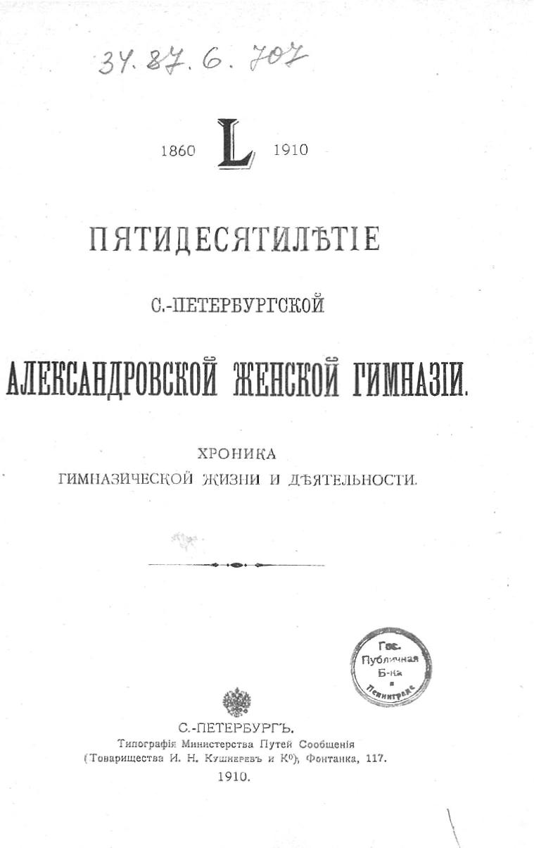 Пятидесятилетие С.-Петербургской Александровской женской гимназии