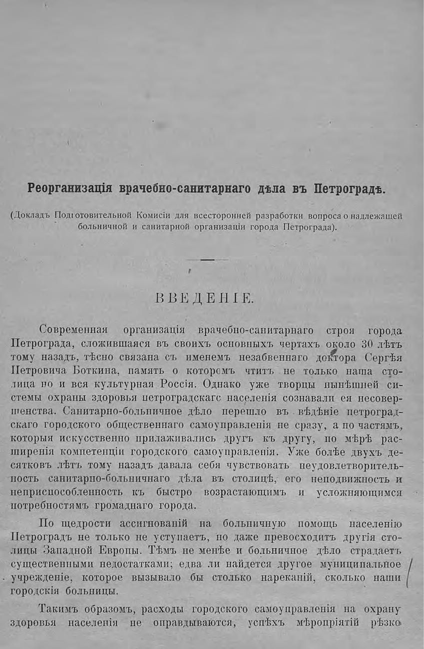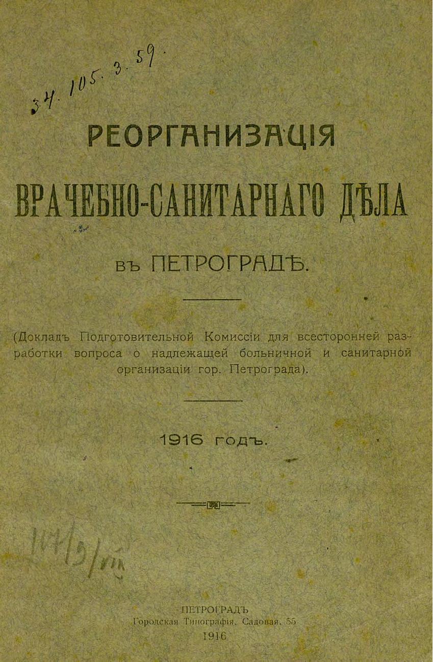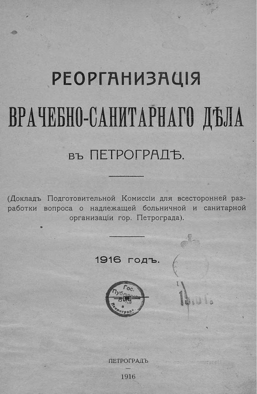 Реорганизация врачебно-санитарного дела в Петрограде (Докл. Подготов. комиссии для всесторон. разработки вопроса о надлежащей больнич. и санитар. организации г. Петрограда)
