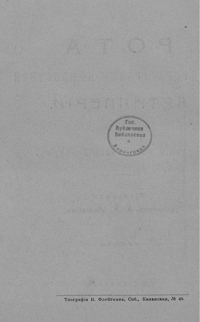 Перешедшие в общественное достояние материалы электронного фонда ЦГПБ им. В.В. Маяковского. Сведения о издательстве или типографии: тип. И. Флейтмана. Место издания: СПб.