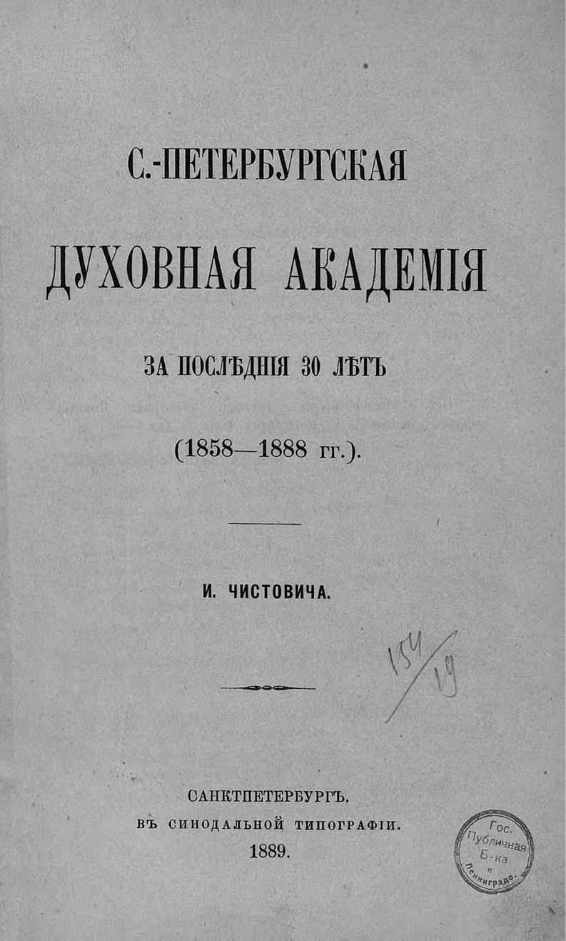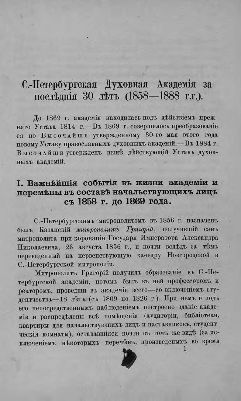 С.-Петербургская духовная академия за последние 30 лет. (1858-1888 гг.)