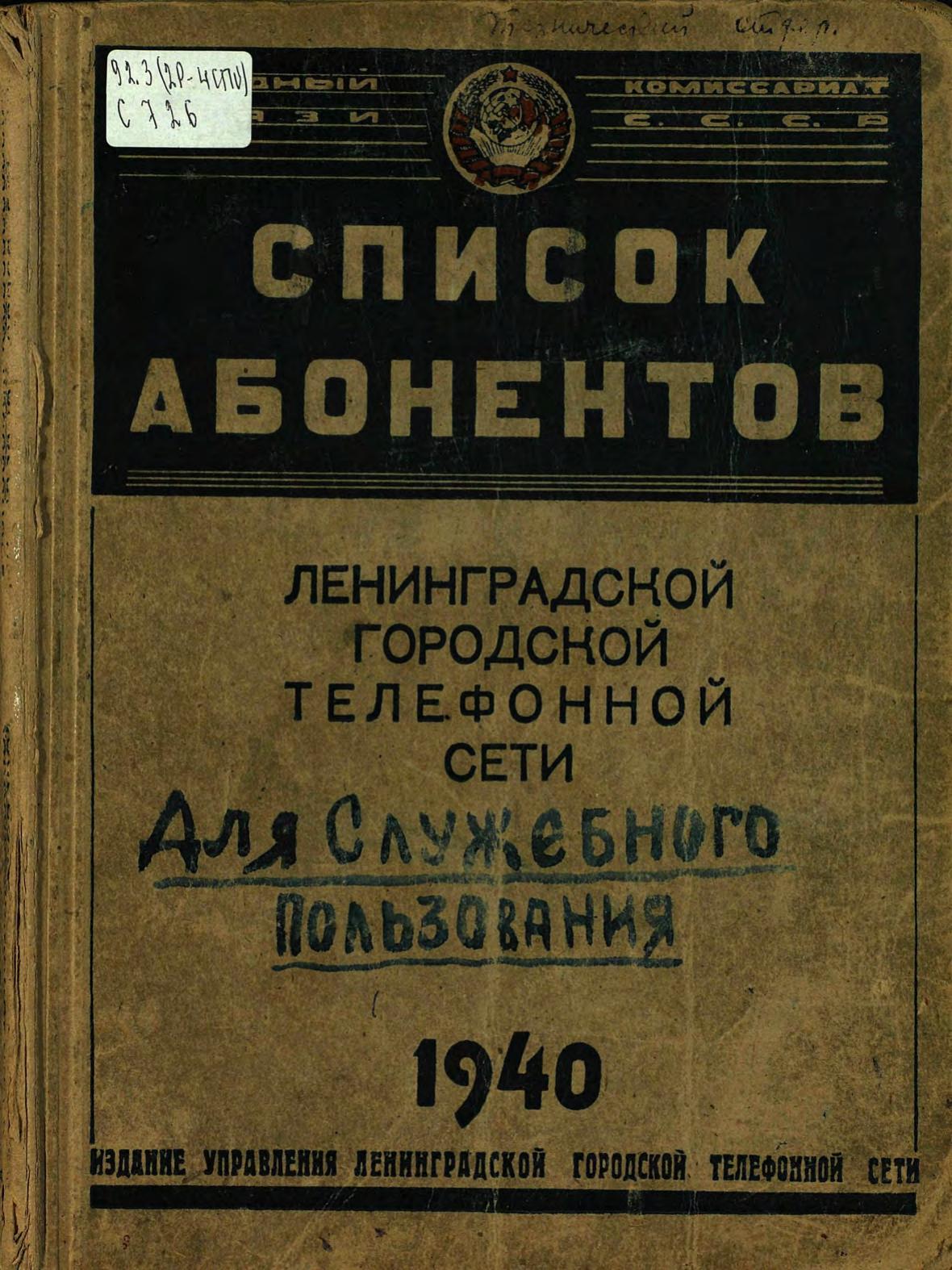Список абонентов Ленинградской городской телефонной сети 1940 года