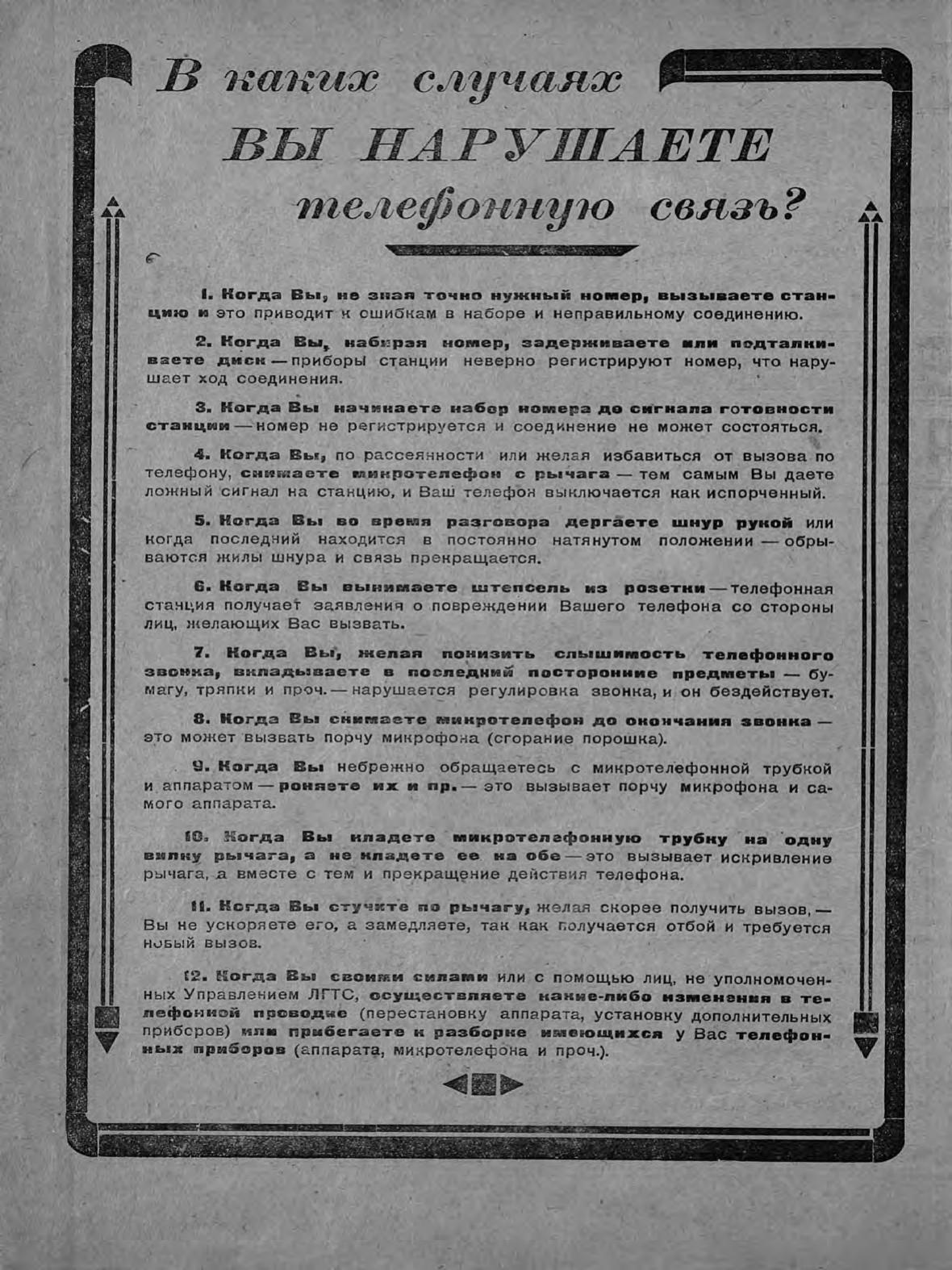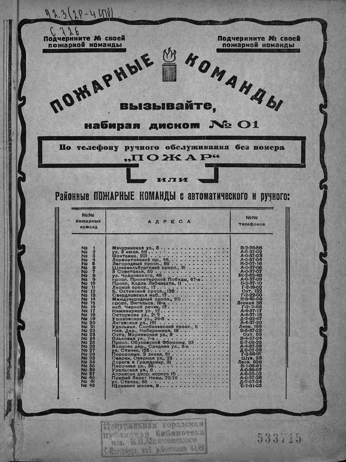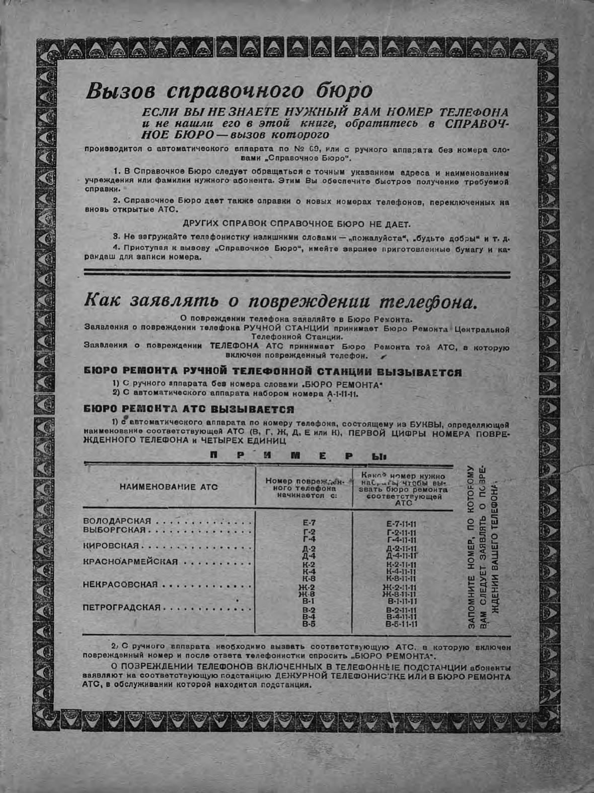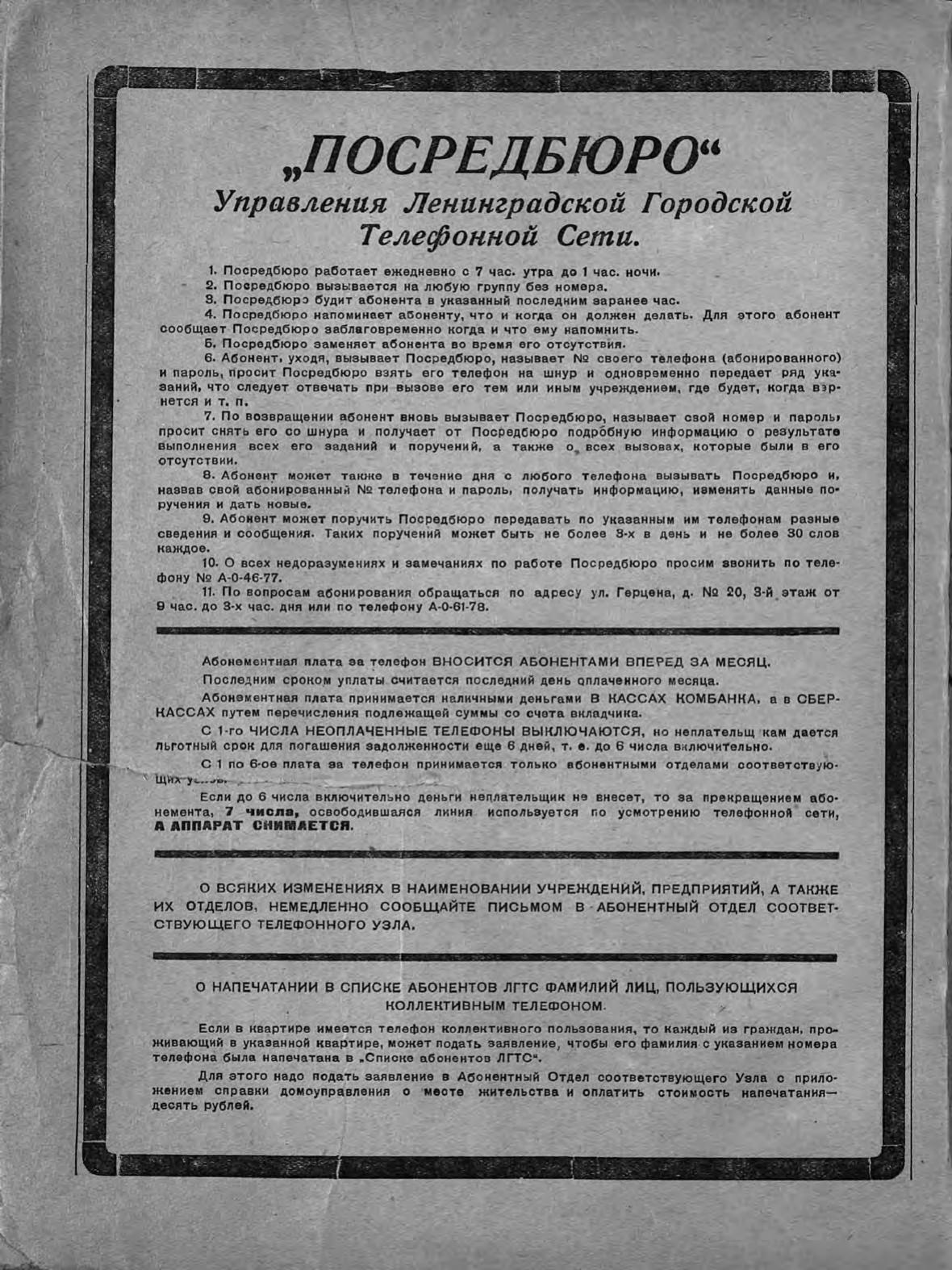 Перешедшие в общественное достояние материалы электронного фонда ЦГПБ им. В.В. Маяковского. Сведения о издательстве или типографии: изд. Управл. Ленингр. гор. телеф. сети. Место издания: Л.