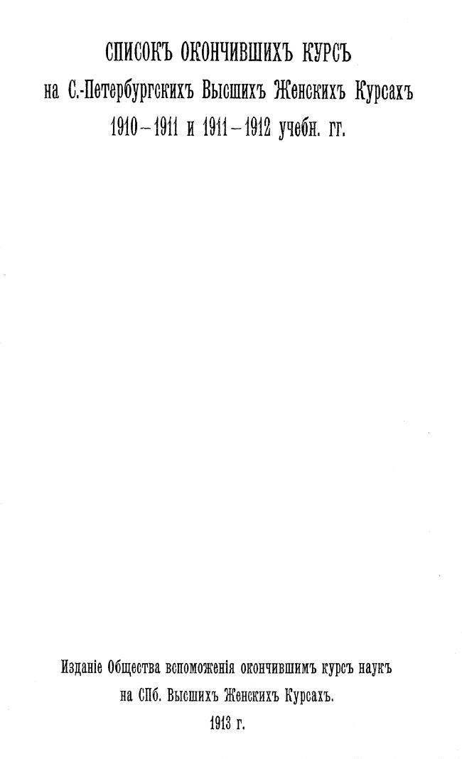 Список окончивших курс на С.-Петербургских высших женских курсах, 1910-1911 и 1911-1912 учеб. гг.