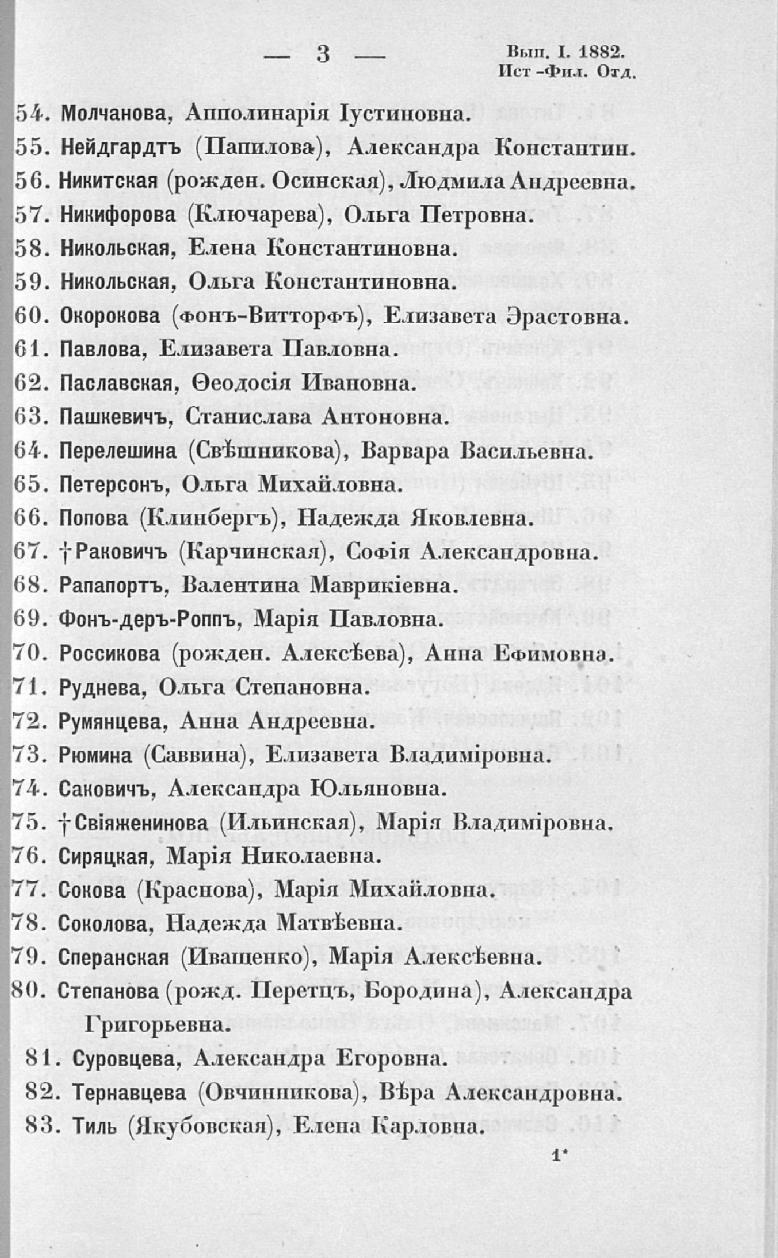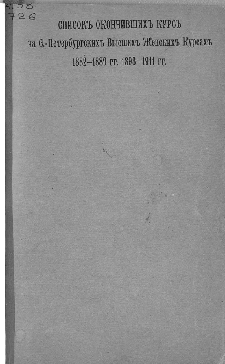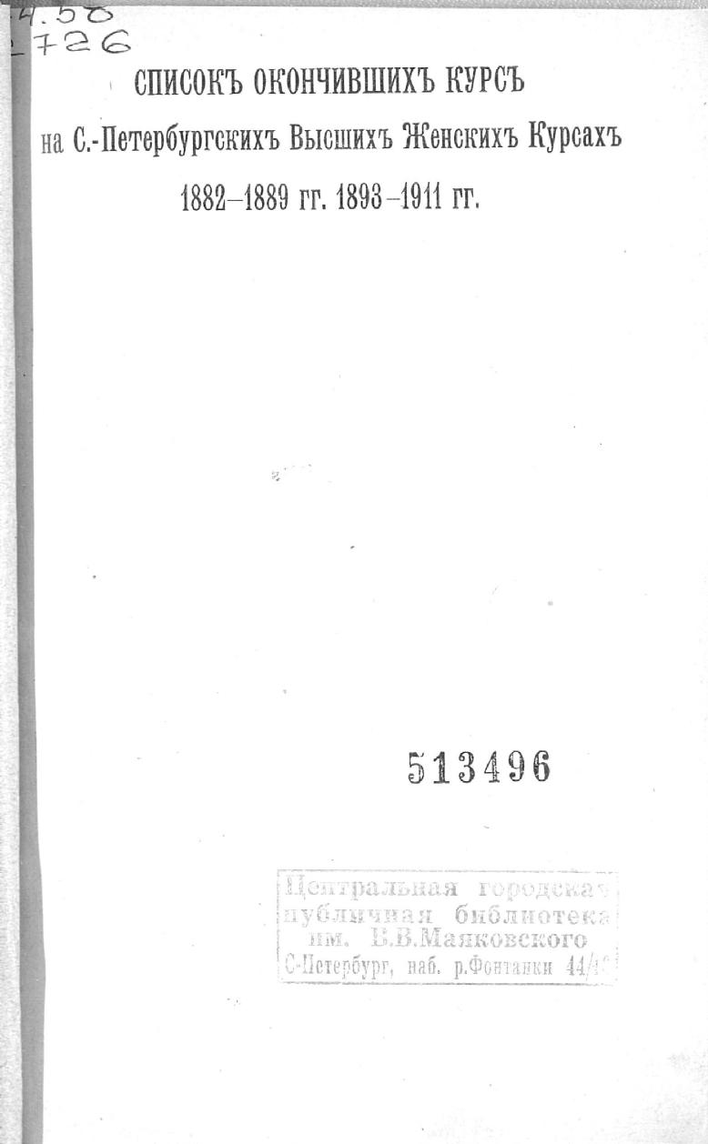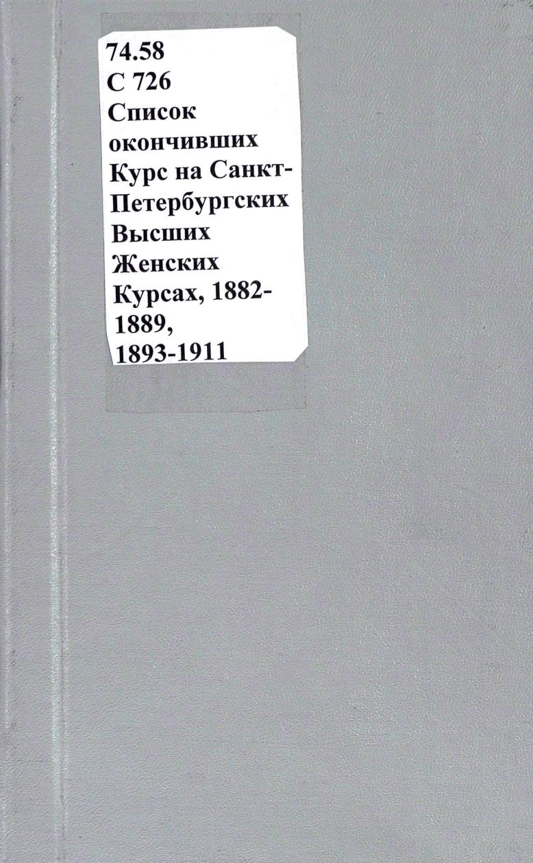 Список окончивших курс на С.-Петербургских высших женских курсах, 1882-1889 и 1893-1911 учеб. гг.