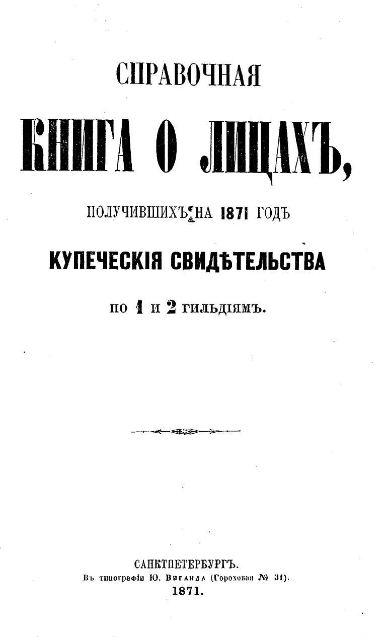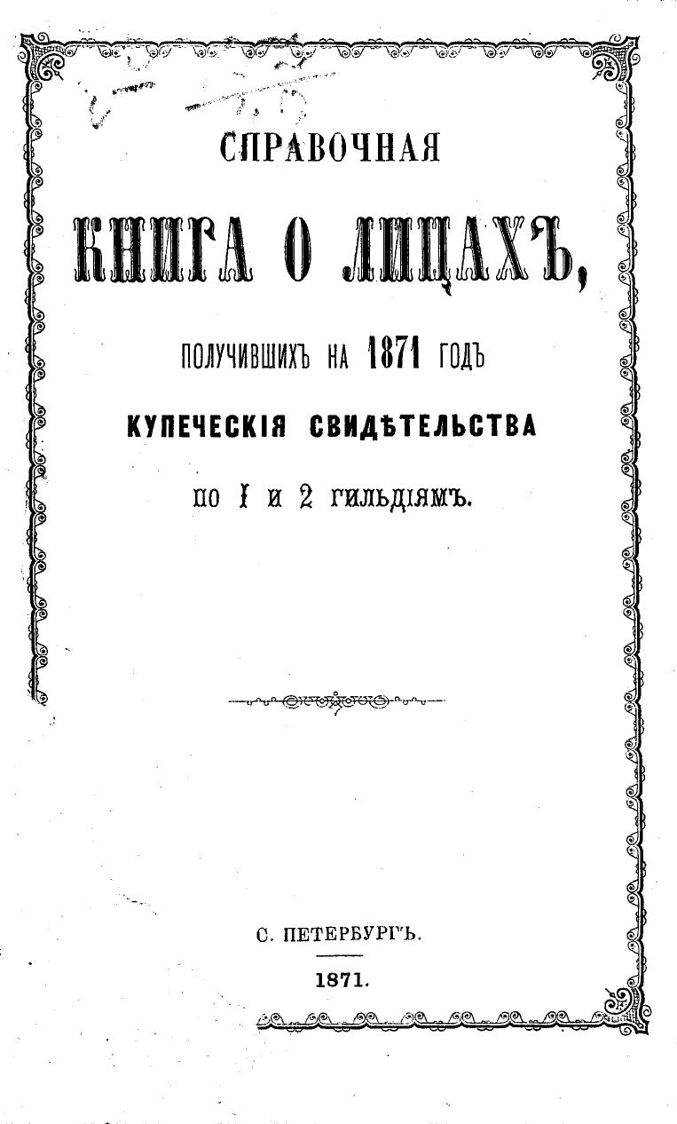 Справочная книга о купцах С.-Петербурга на 1871 год Петербургская купеческая управа