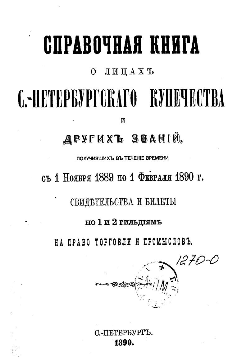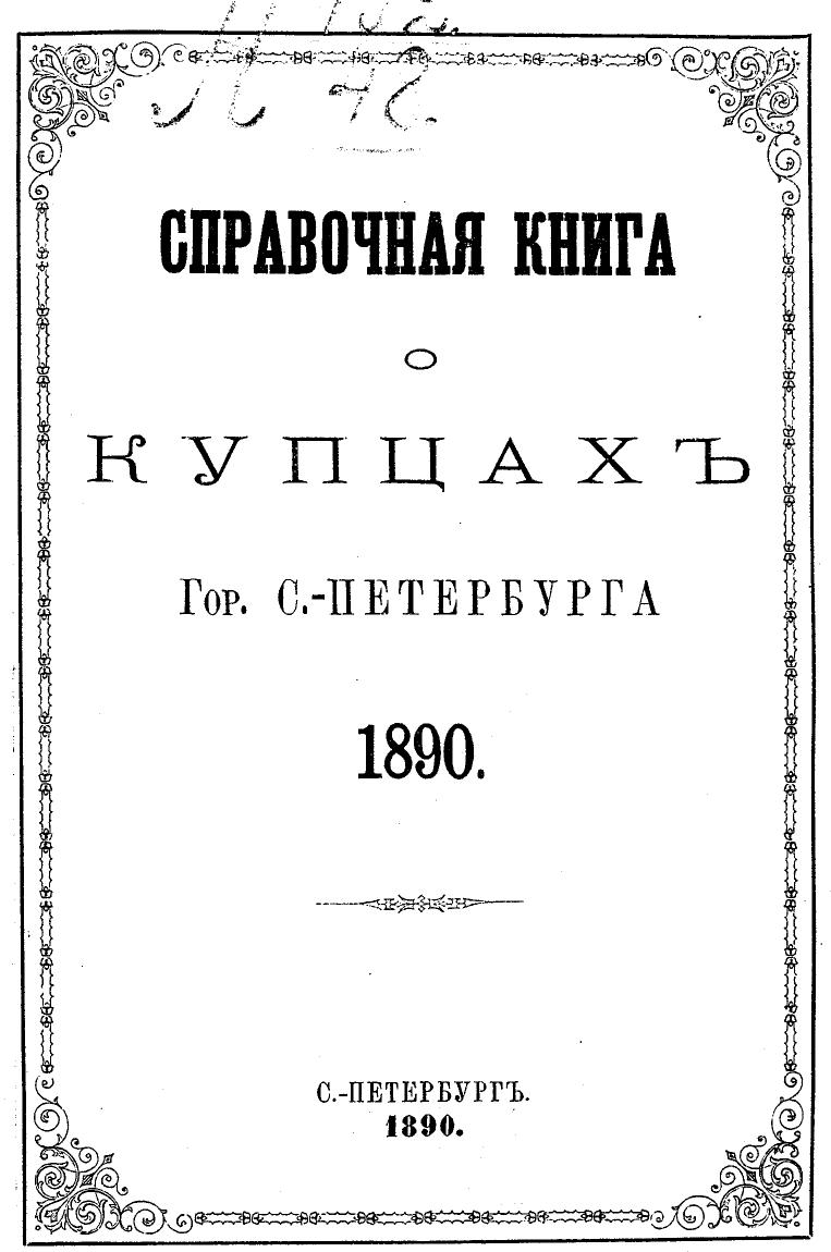 Справочная книга о купцах С.-Петербурга на 1890 год Петербургская купеческая управа