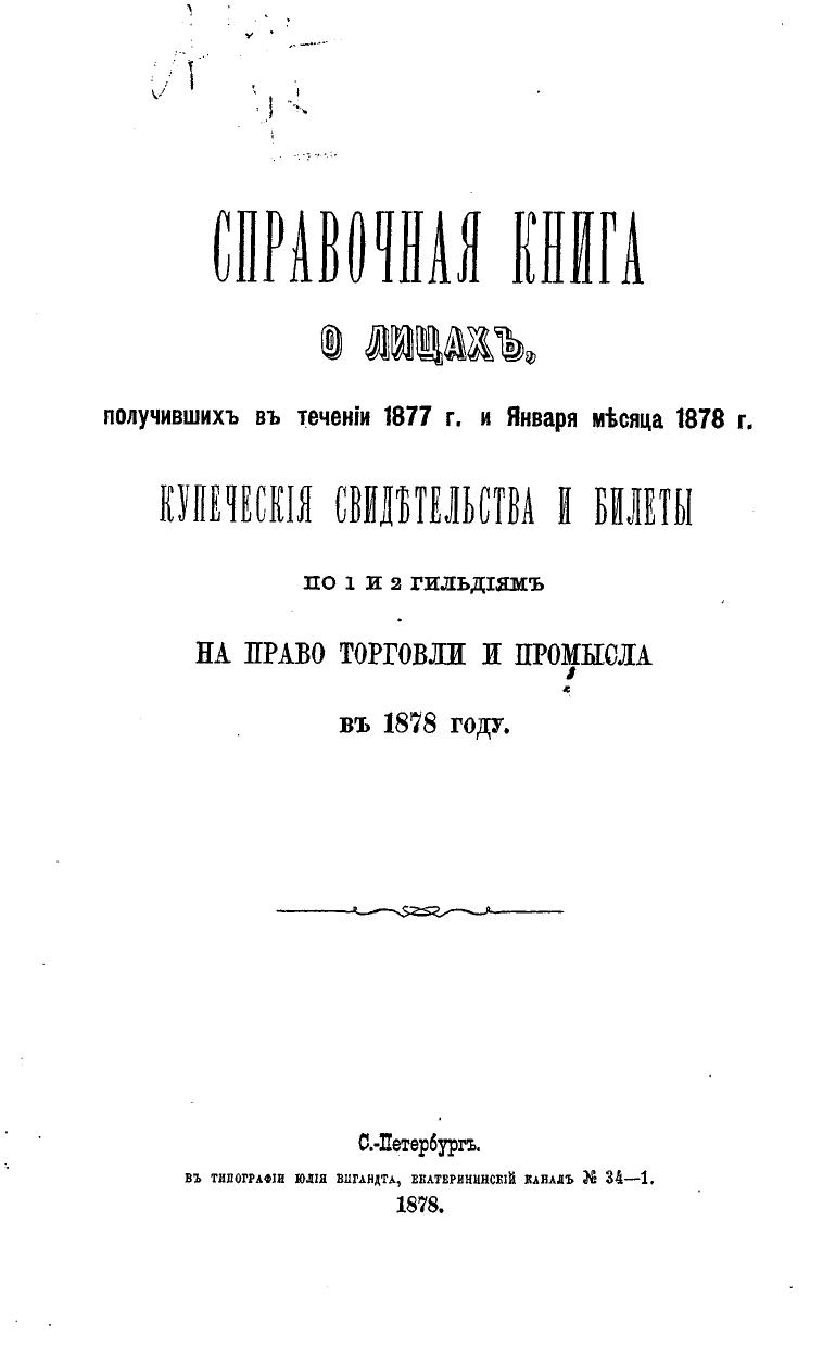 Справочная книга о купцах С.-Петербурга на 1878 год Петербургская купеческая управа