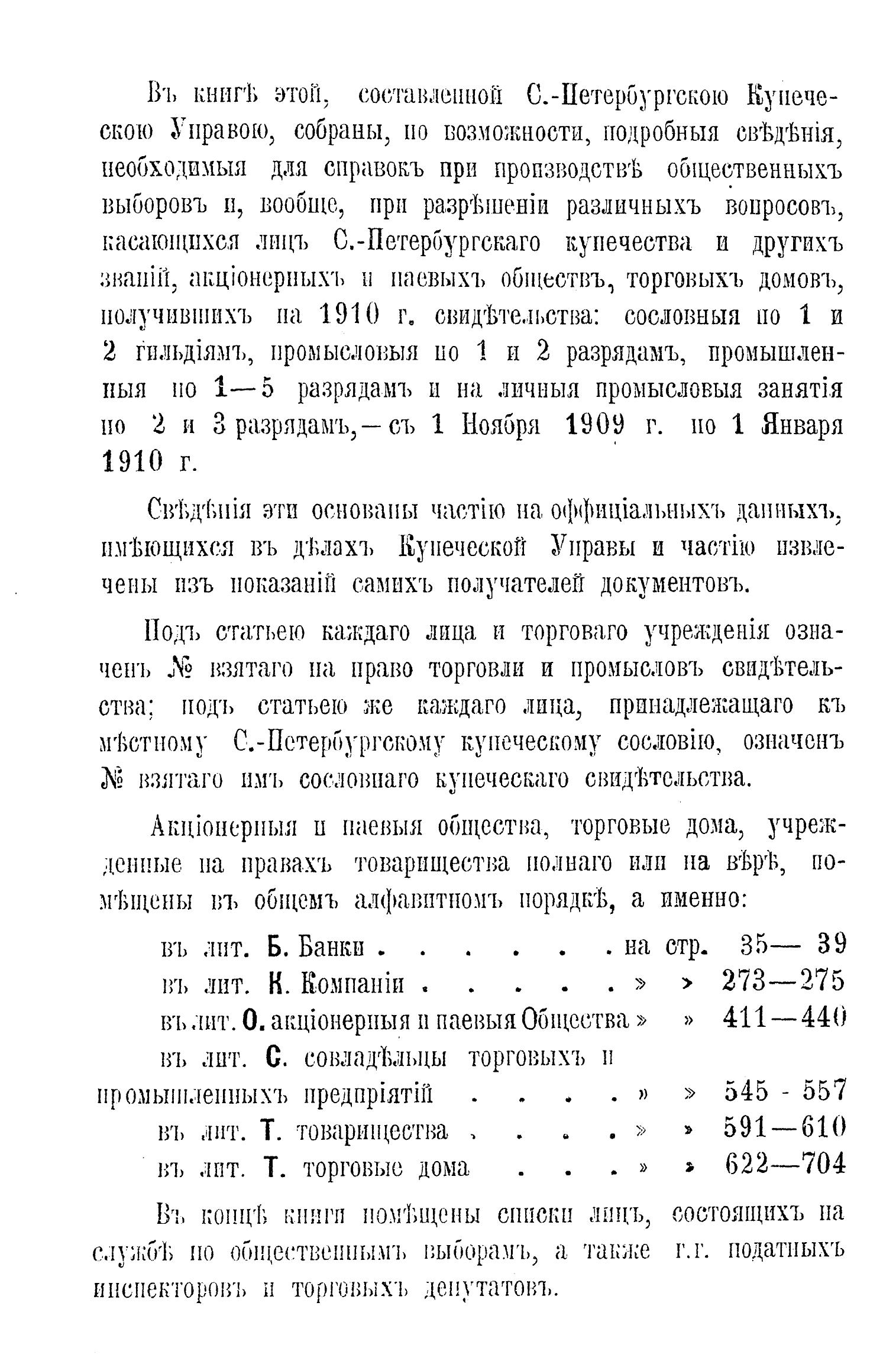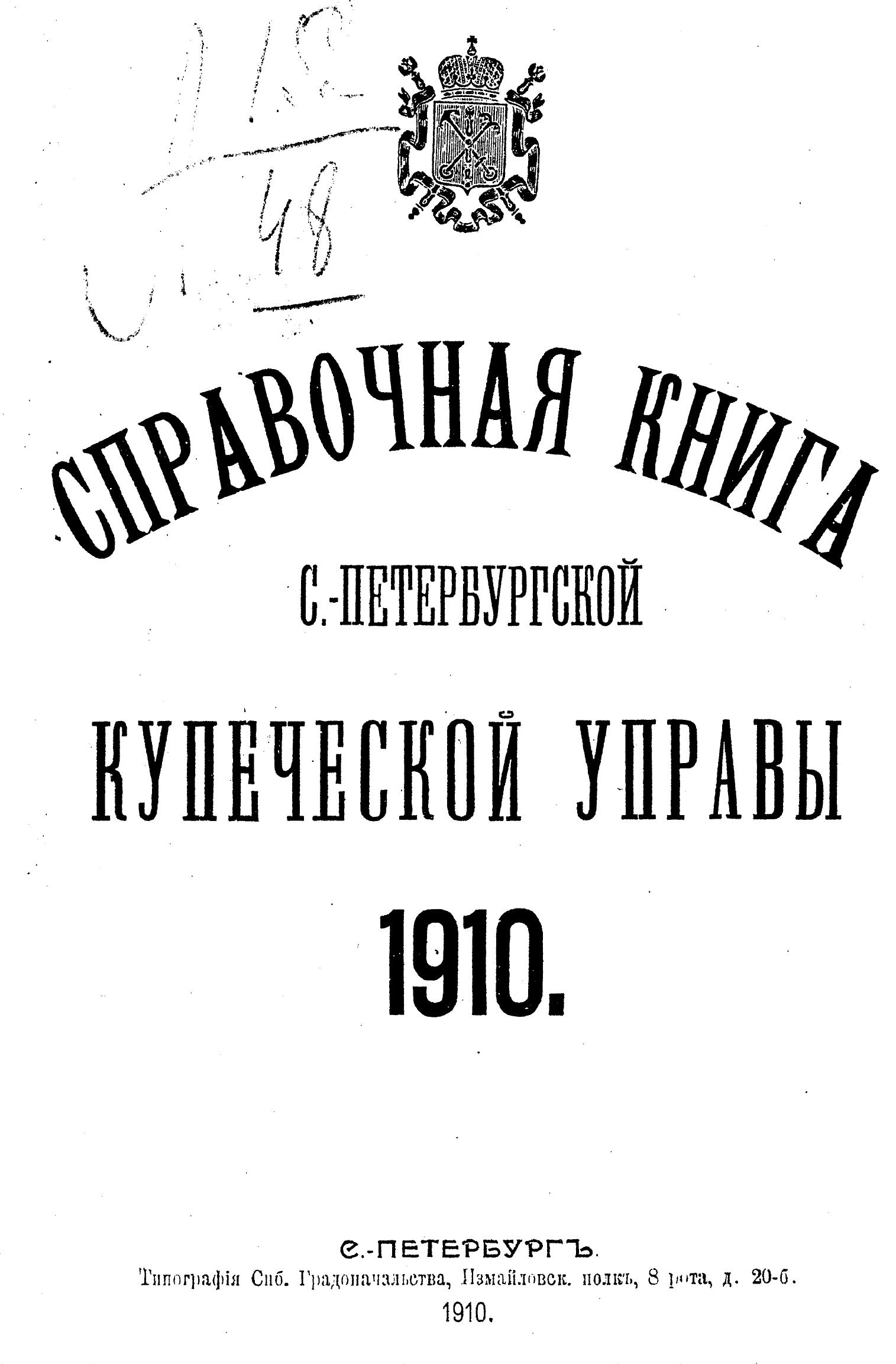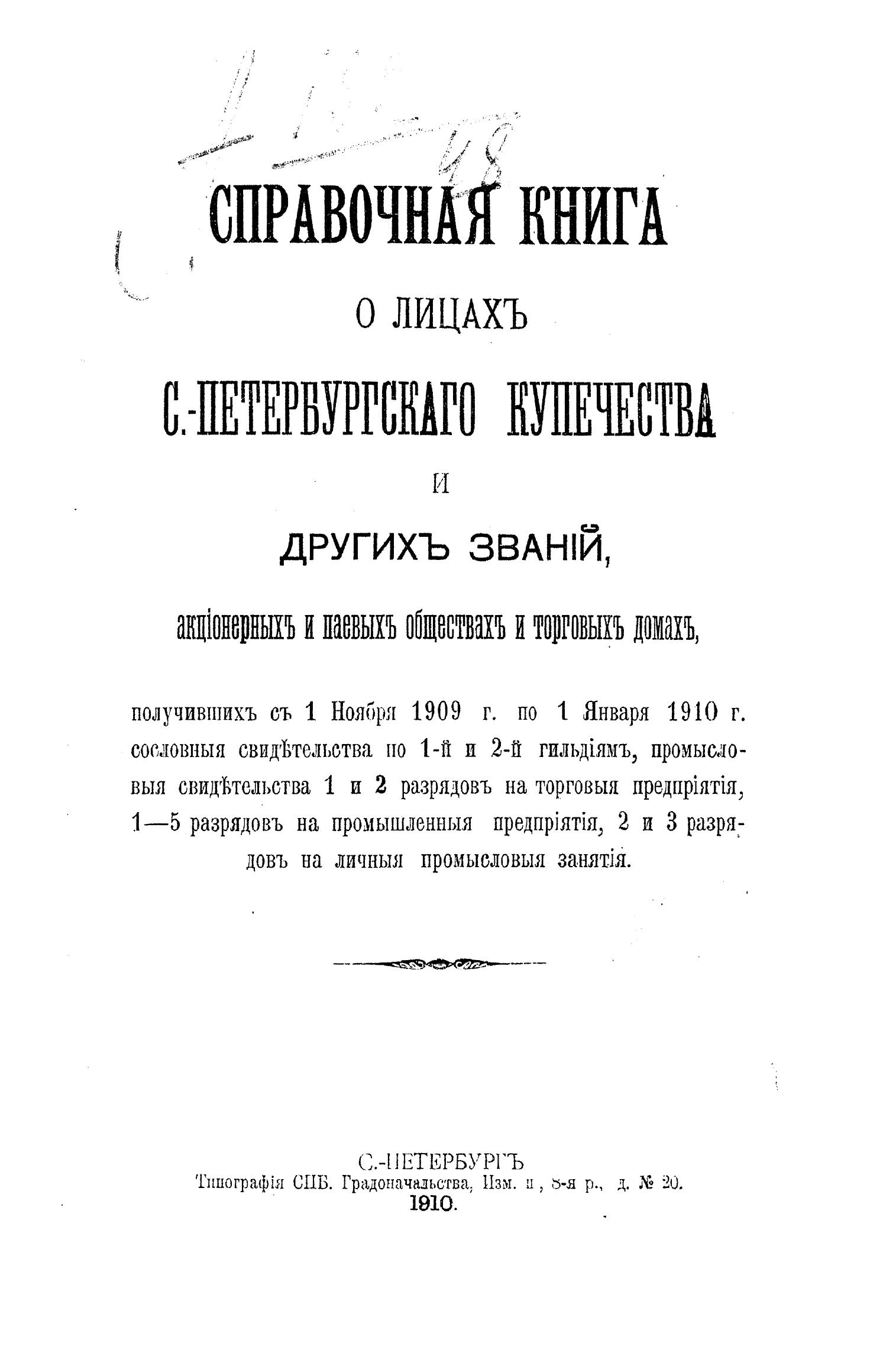 Справочная книга о купцах С.-Петербурга на 1910 год Петербургская купеческая управа